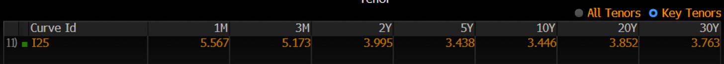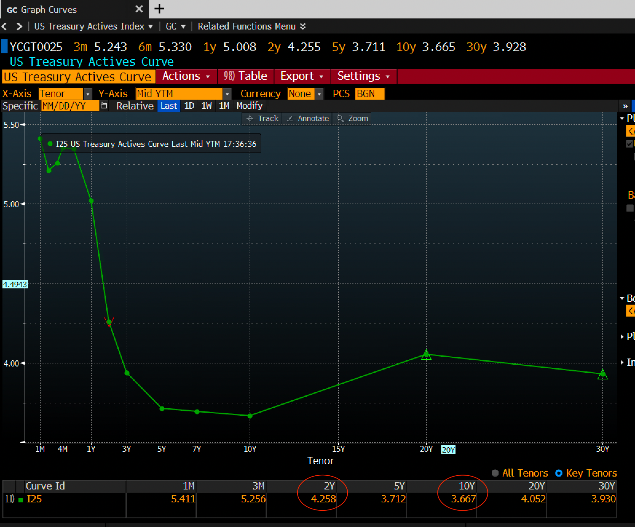 Focusing on the front end of the curve you can see that the 1-month and 3-month are little changed, but from the 2-year yield, the treasury curve has steepened.