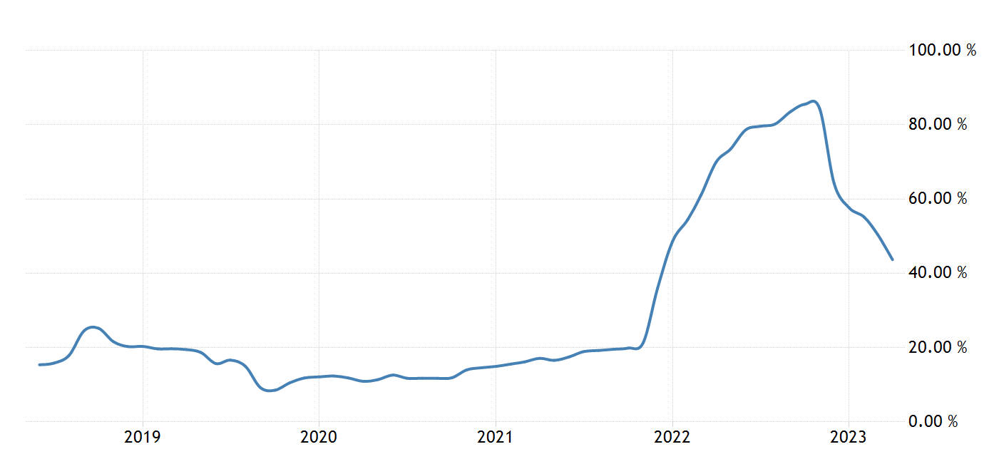 Over recent years, the Turkish economy has been brought to its knees by bad monetary policy, a weak fiscal policy and running a growing trade deficit. Turkey is a net importer of energy, importing from Russia (43%), Iran (17%) and Iraq (13%), meaning that as energy costs have spiked higher this has worsened the ongoing inflation battle depleting the country’s current account.