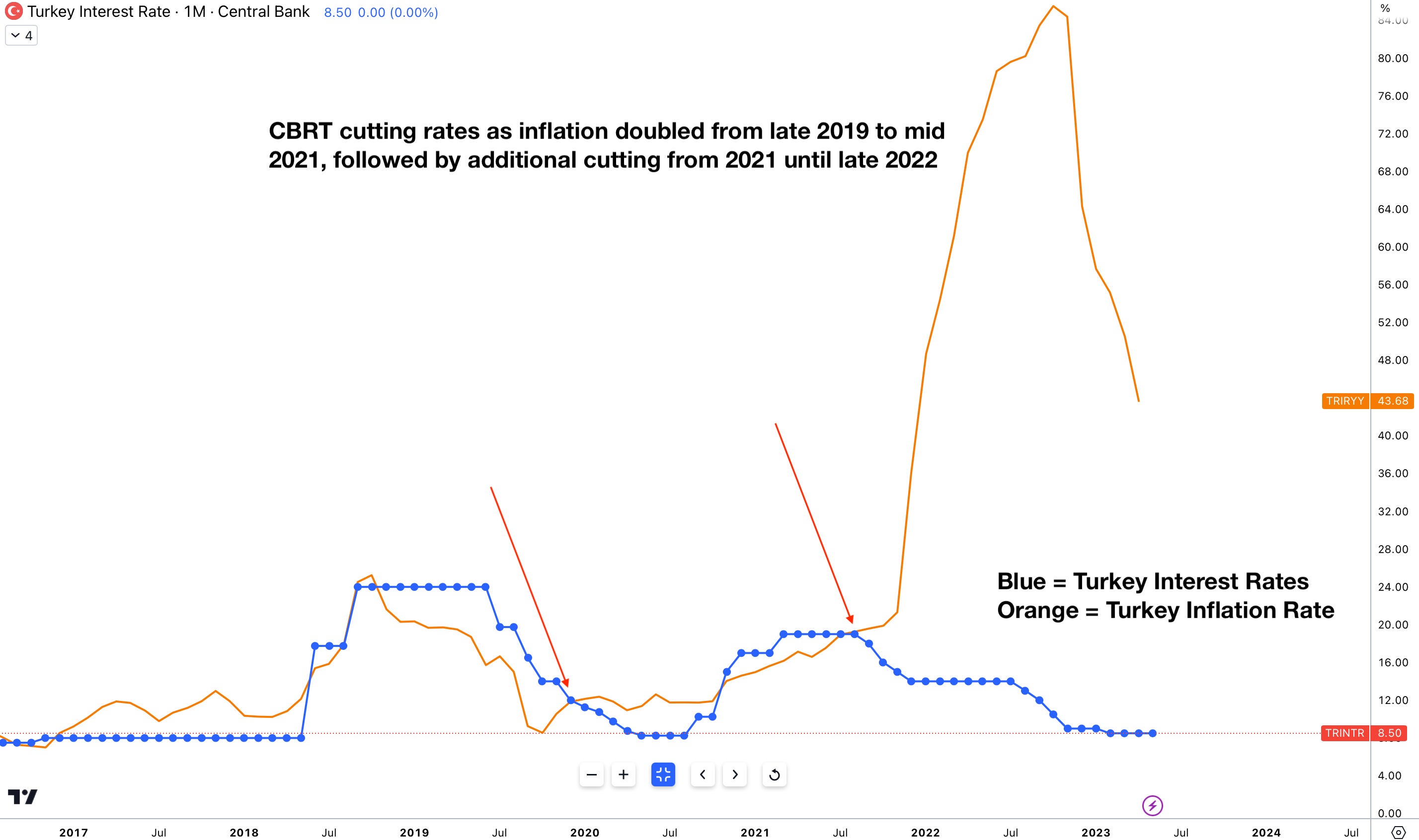 Since 2020 Erdogan has fired four central bank governors who either raised interest rates during soaring inflation (the right thing to do) or refused to lower interest rates as inflation soared (also the right thing to do).
