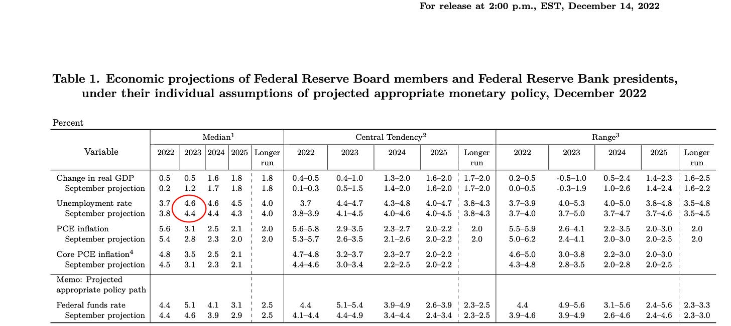 So if you recall the SEP (summary of economic projections) released Dec 14th,