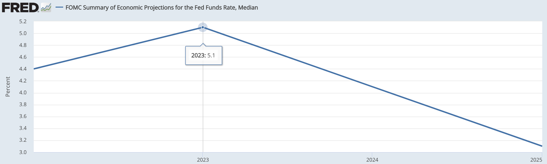 If we just take a step back and look at the SEP projections for the fed funds rate released in December 2022 for this year; you’ll realise just how much of shift markets and traders are having to make.