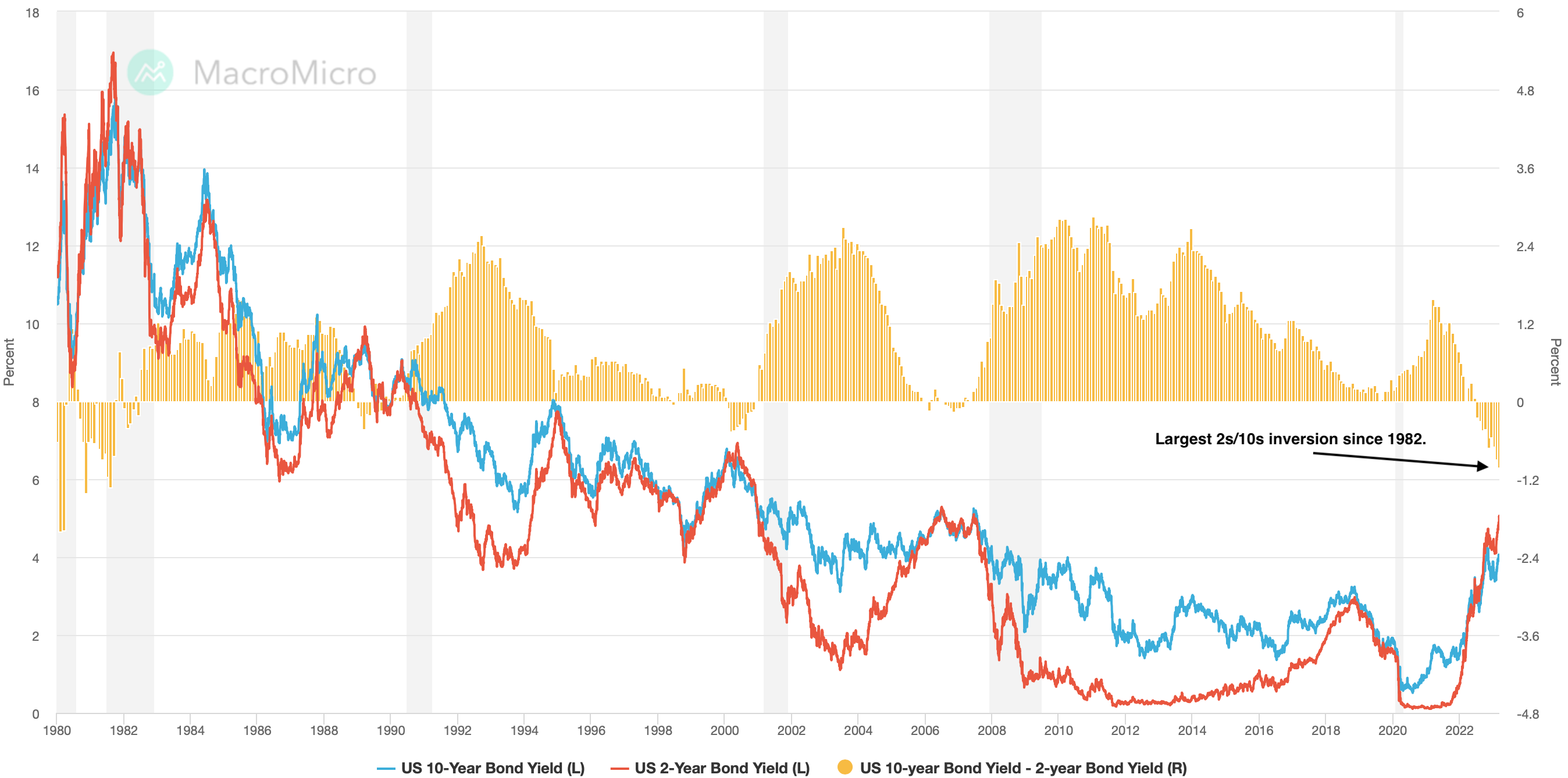 The 2-year treasury peaked past 5.00% and the 10-year note was back above 4.00%. The expected terminal rate for Federal Reserve is 5.50% - 5.75%;