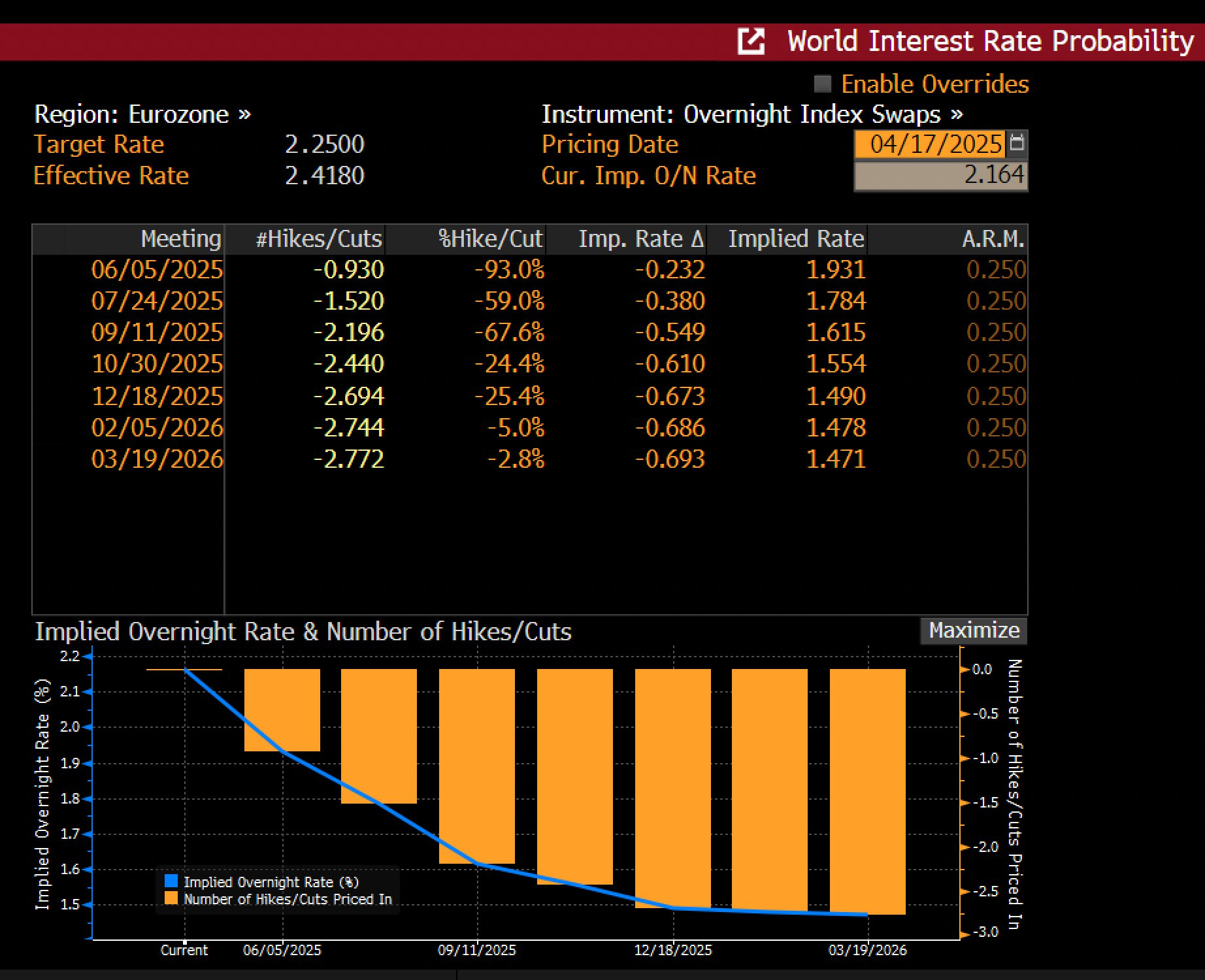 On the interest rate side of things, its clear to see that rate differentials have taken a back seat in driving markets (particularly FX). The ECB cut rates for the seventh time since June, lowering them to 2.25% from 2.5%, amid tariff concerns. Focus shifted to "downside risks" in growth. Markets now expect the deposit rate to hit 1.58% in December, down from 1.71%. Normal capital flows would mean a weaker Euro but safe haven flows have provided support to the Euro, however, most gains seen are predominantly due to the fact that it is the 2nd most liquid currency to the dollar.