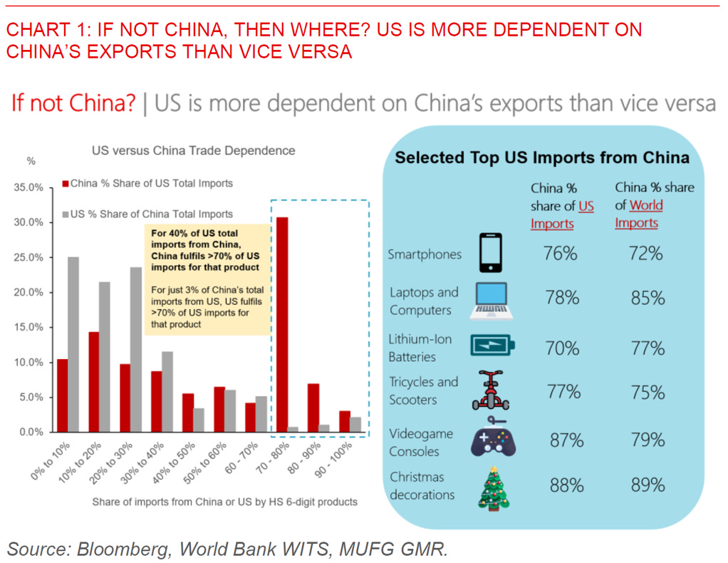 By many respects, the US is much more dependent on China’s exports, than China is on US exports, although there is no doubt a negative impact on both sides from a tariff and trade war.