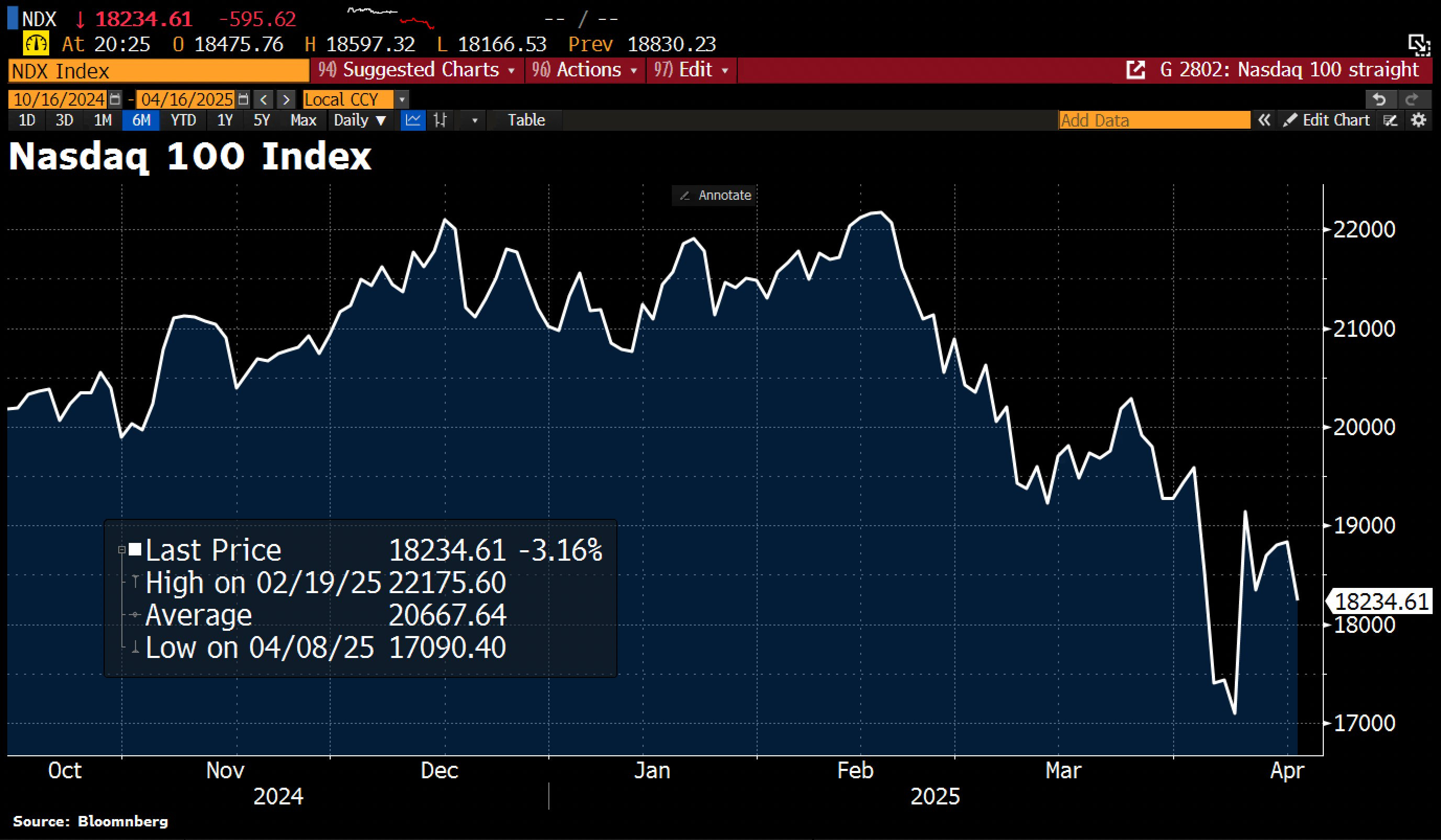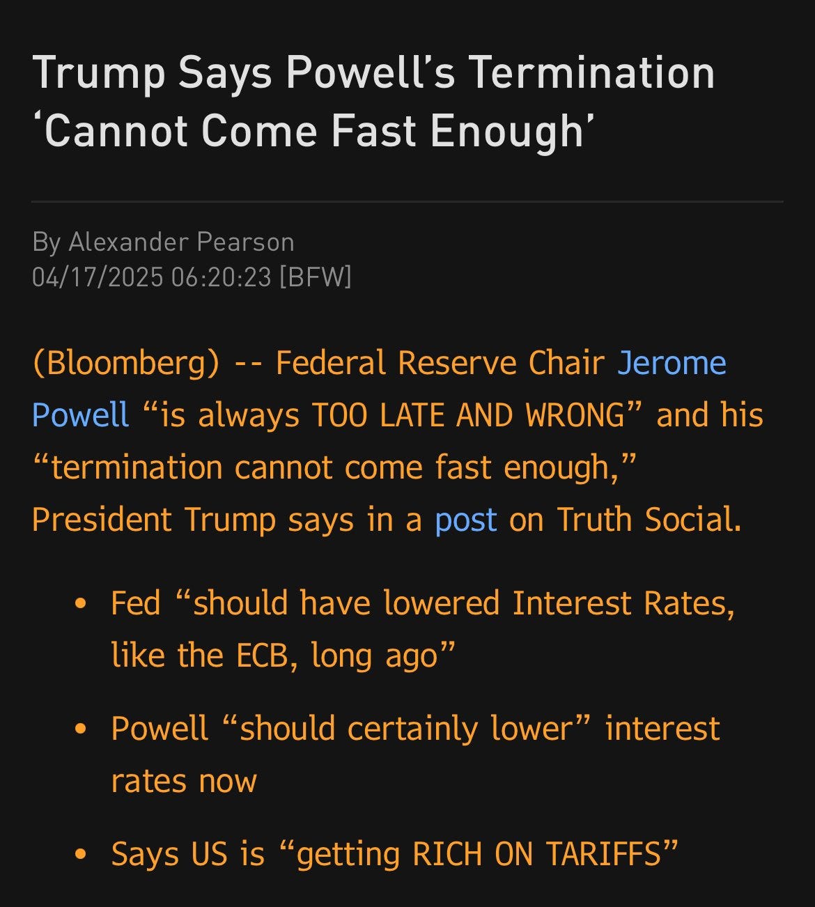 Nasdaq 100 actually plunged c.3% after hawkish Powell remarks. He even warned that tariffs are “significantly larger than anticipated.” Powell tried to then show a calm nature by saying that markets are functioning and orderly. He pushed back against the idea of a "Fed put" to bail out stock markets. Equity markets usually selloff on hawkish remarks, but I think this selloff was driven by uncertainty rather than basic hawkishness.