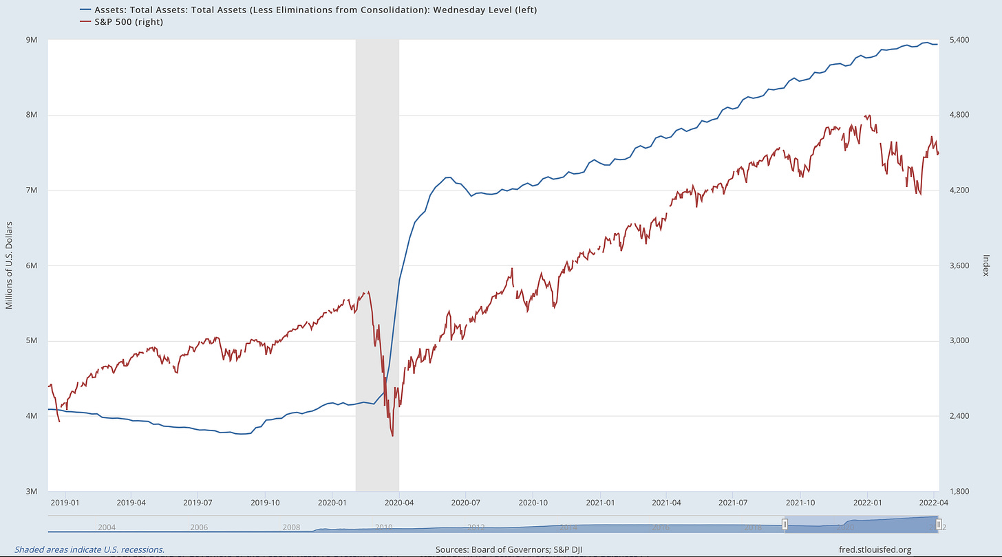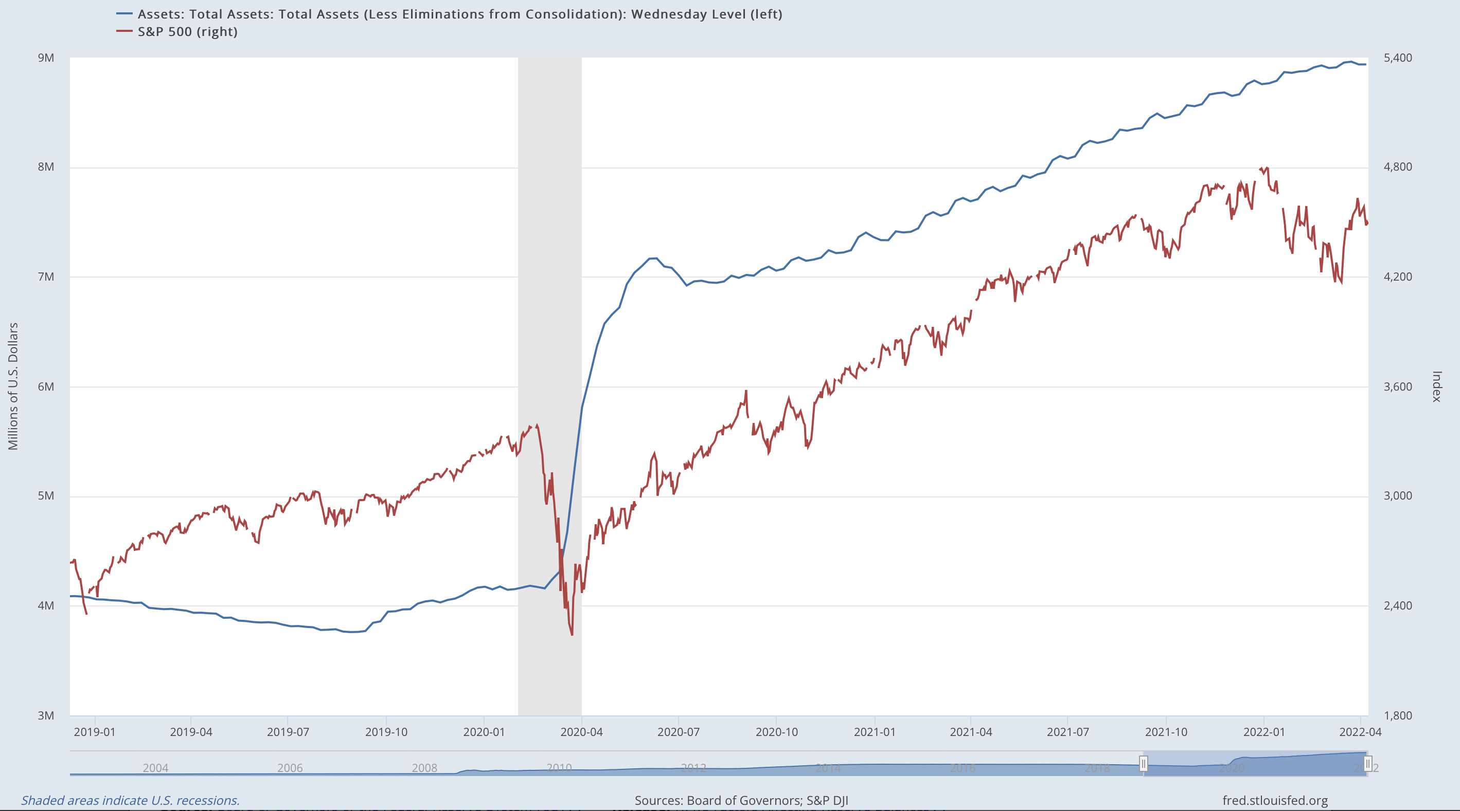 It is clear from the Fed’s perspective they need financial conditions to drastically tighten with Fed Chair Powell making that clear in his March press conference. This message failed to have a real felt effect on markets last week when the Fed minutes showed that due to the uncertainty presented by Russia-Ukraine we will most likely see a 50bps hike later this year with a 25bps priced in for the May rate decision. As we know the Fed balance sheet and U.S equities have a direct correlation (shown below), so an aggressive tightening by the Fed can only lead U.S equities lower in the aftermath.