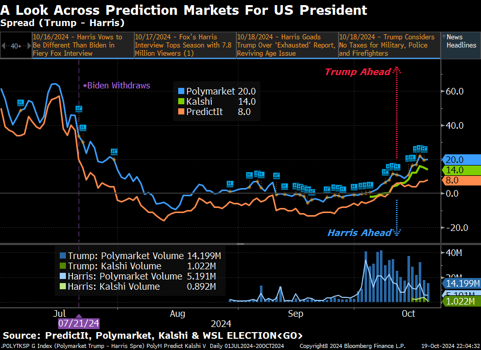 In my opinion, I see a Trump victory sparking large risk-on environment. However, I think the policies he will introduce will be delayed until the Fed truly have inflation tamed, because they will be less effective if the Fed needs to keep such high interest rates.