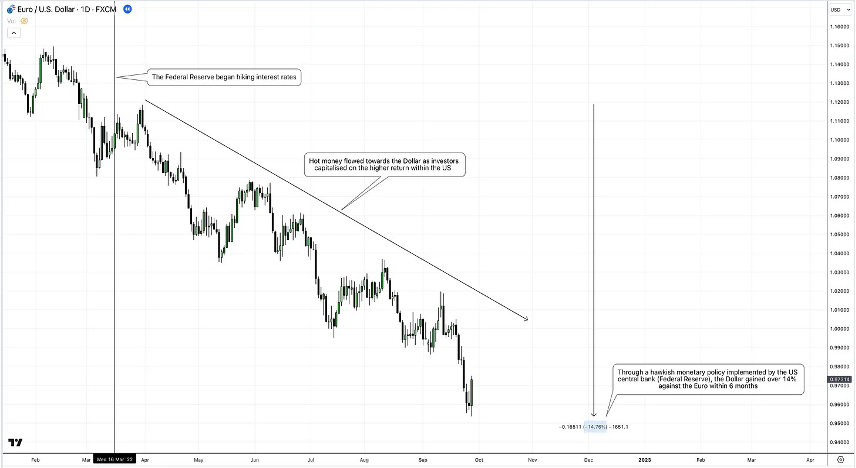Hawkish monetary policies, characterised by rising interest rates, can attract short-term investments seeking higher returns. However, they can also simultaneously reduce overall liquidity within the financial system.