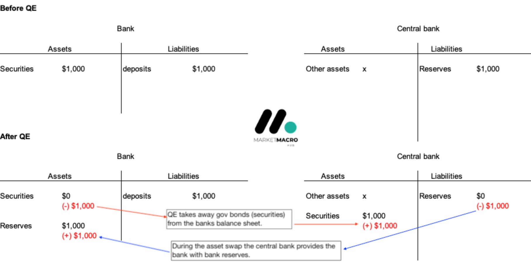 Here’s a visual look at what happens to the balance sheet of a central bank during QE.
