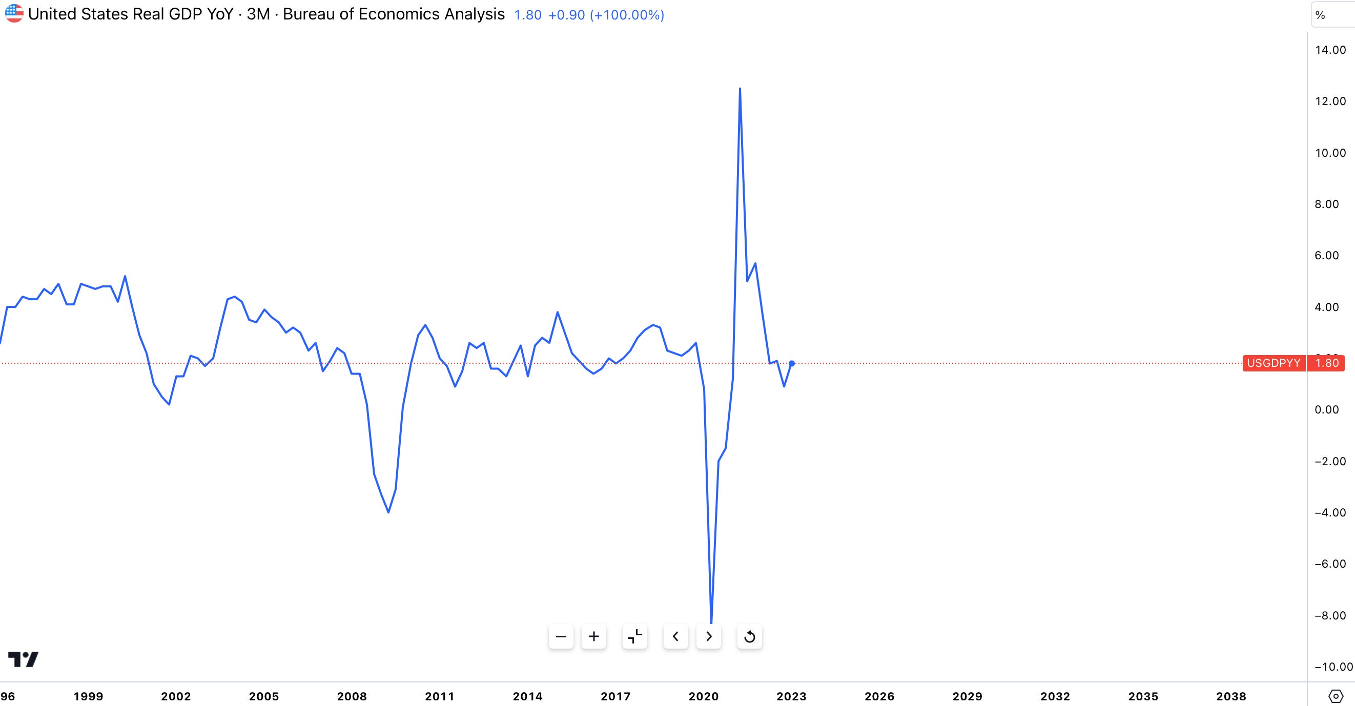 Put simply, this environment is exactly the middle of the dollar smile theory I shared with you all, there is no reason for the dollar to rally past 103.00 unless we have a drastic turnaround in inflation. Real GDP is below trend at 1.8%, the Fed is “close” to the end of their tightening cycle according to Mary Daly, President of the Federal Reserve Bank of San Francisco.