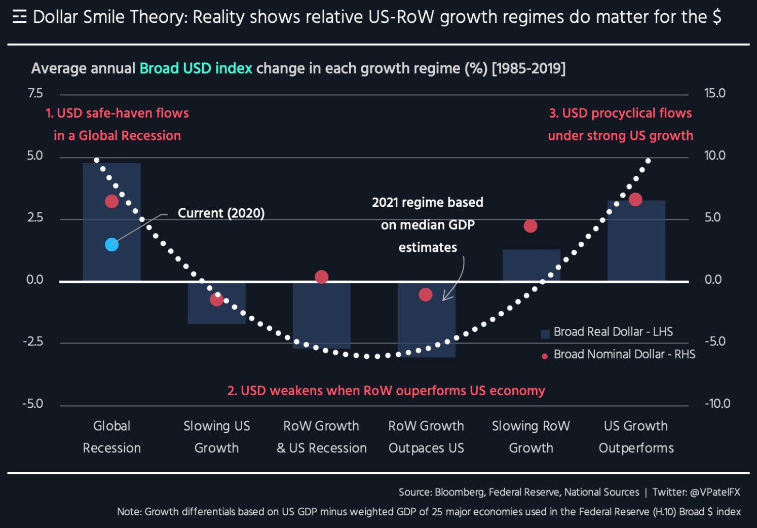 Another confirmation is non-other than the dollar smile theory I’ve shared with you all, as we know we’re currently sitting in the middle of the dollar smile where the U.S economy is neither outgrowing the RoW (rest of world) nor acting as a safe haven flow in times of uncertainty.