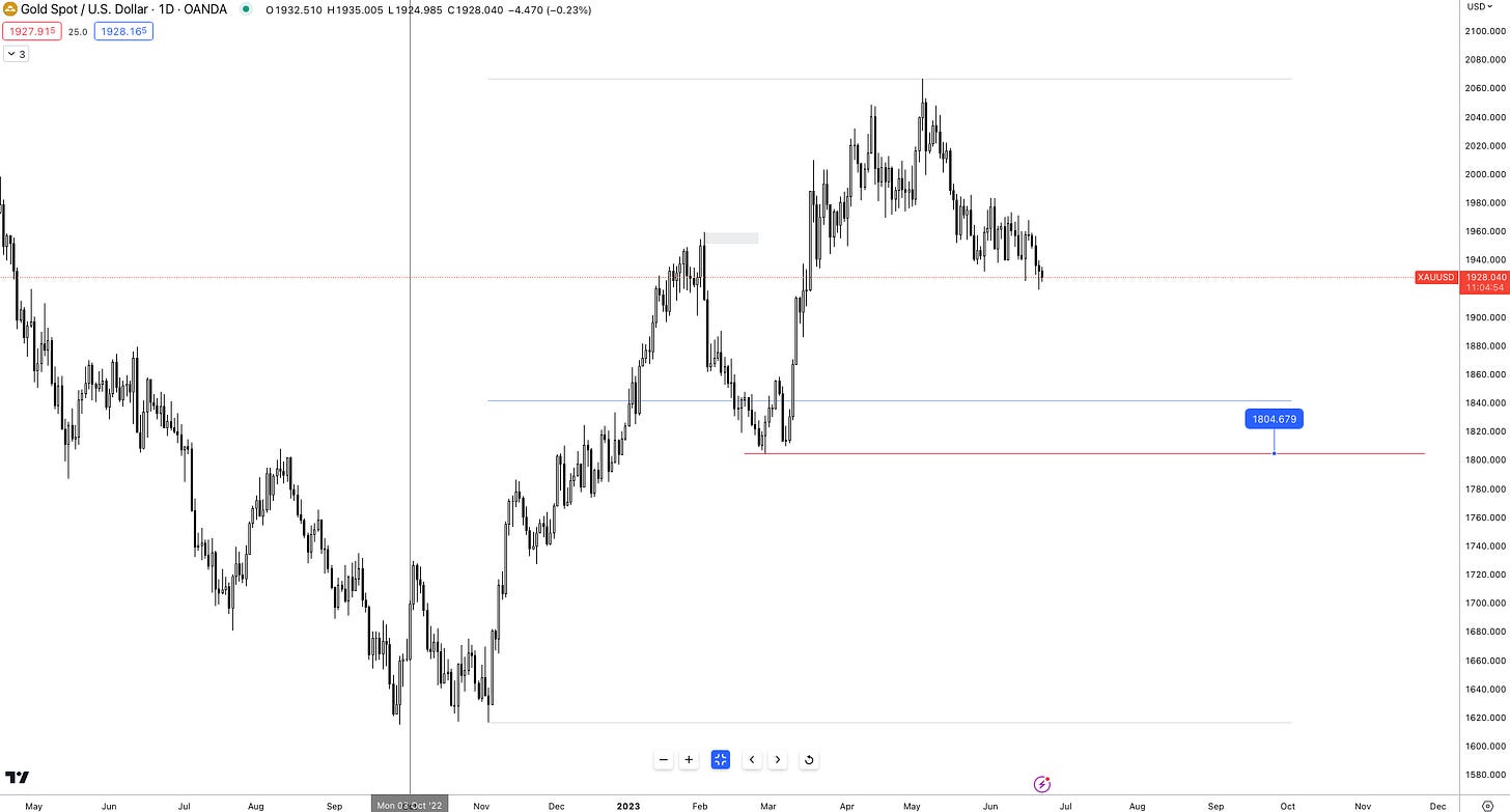 My conviction play behind gold would be to hold any bets until we have a final sell-off into the 1800s region. From this region, I would want to be long gold both from a technical aspect and a macro point of view.