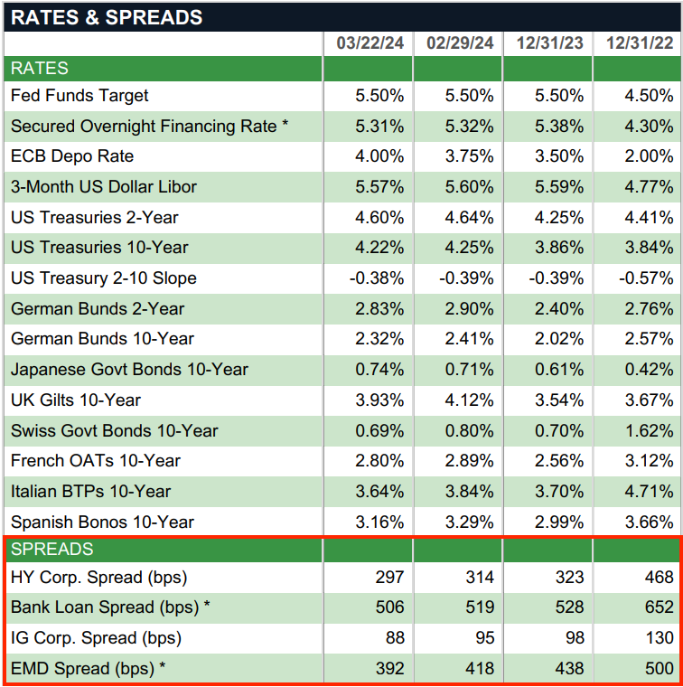 In the U.S policymakers are at a standstill, last week we received the revived SEP (Summary of Economic Projections), which showed a modest increase in expectations for 2024’s GDP growth, +0.7% vs December’s GDP projections and +0.2% for PCE inflation.