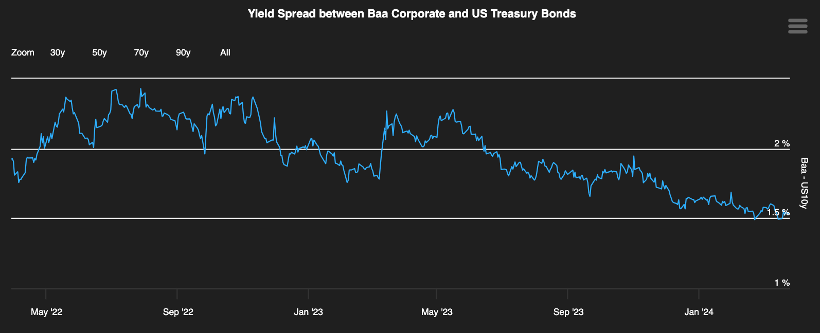 So, during QT, the Fed will sell/allow bond holdings to mature, draining the reserves (liquidity) within the financial system which would therefore increase the credit risk of borrowers and the yield spread between fixed-income securities and risk-free US treasuries.