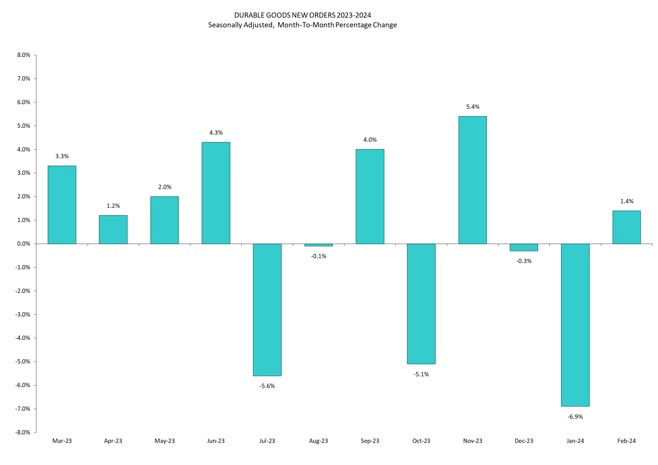 In February, new orders for durable goods recovered to 1.4% after January’s negative revision to 6.9%. As given in the name, durable goods are items like cars, refrigerators, machinery equipment etc, that have a lifespan of more than three years.
