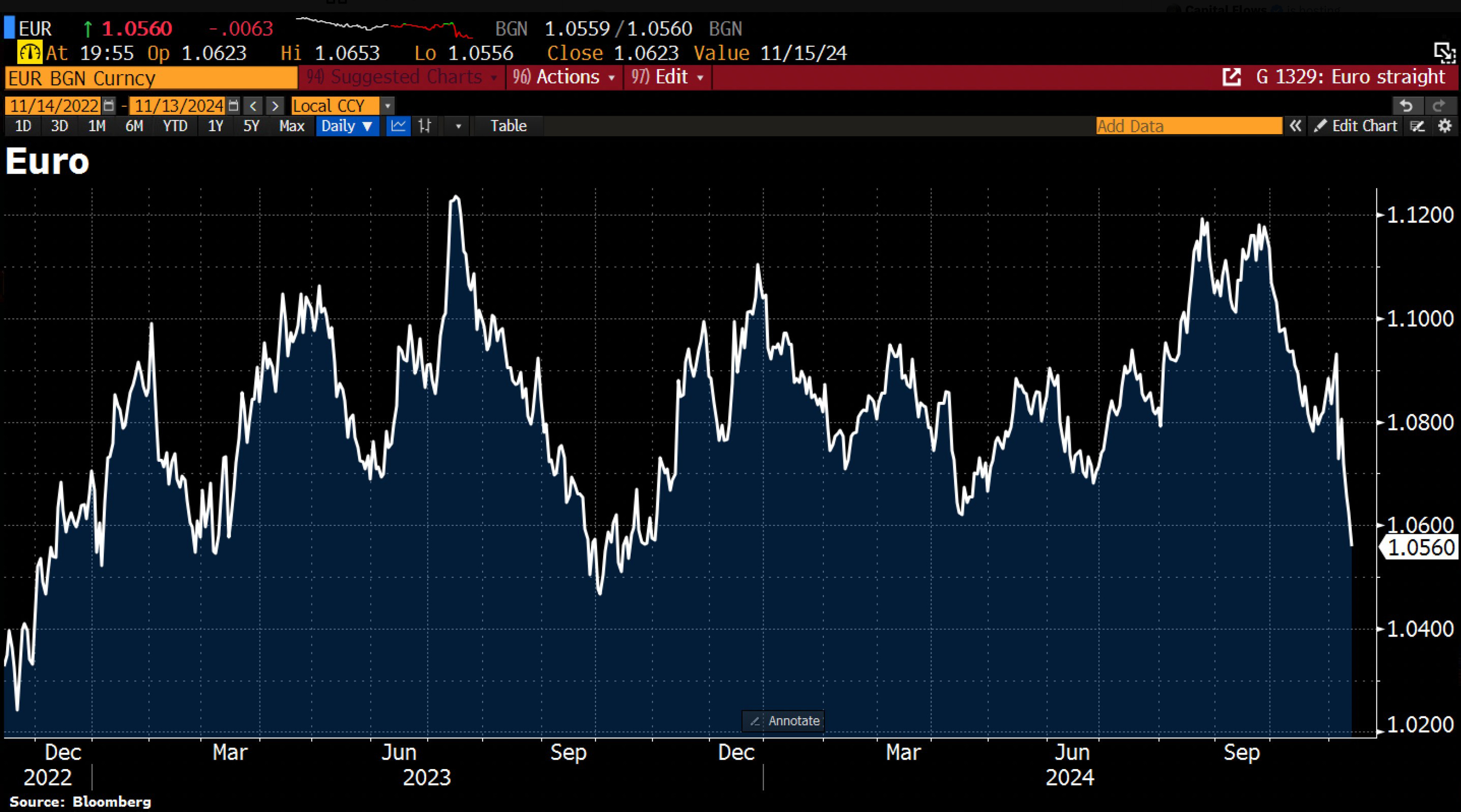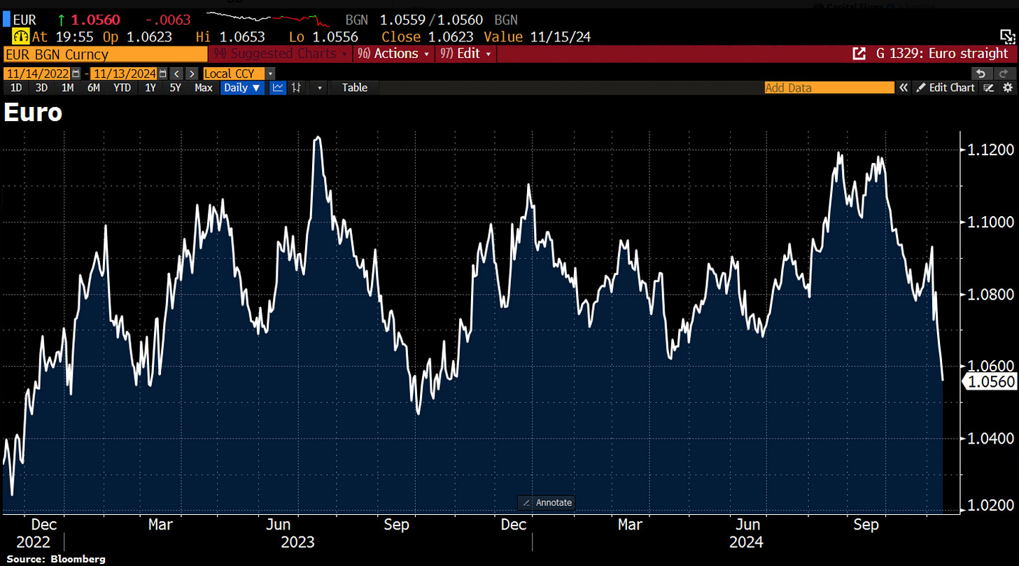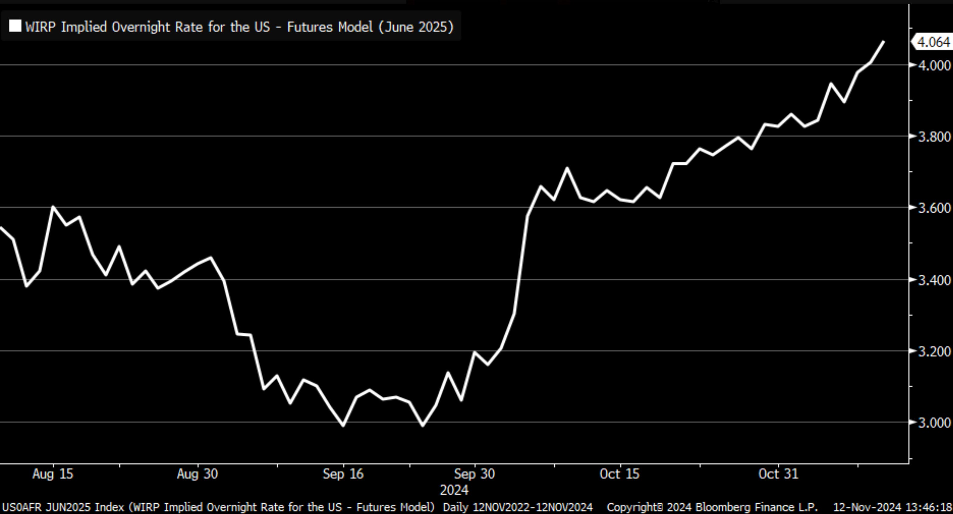 The U.S. OIS market has priced out well over 100bp of cuts in 2025, with the implied rate for September 2025 at c.4.00%. The Fed has a very good reason to skip a cut in December and instead cut by 25bp in January, these rate pushbacks simply coming from Trump’s regimes which are inflationary (tax cuts and tariffs).