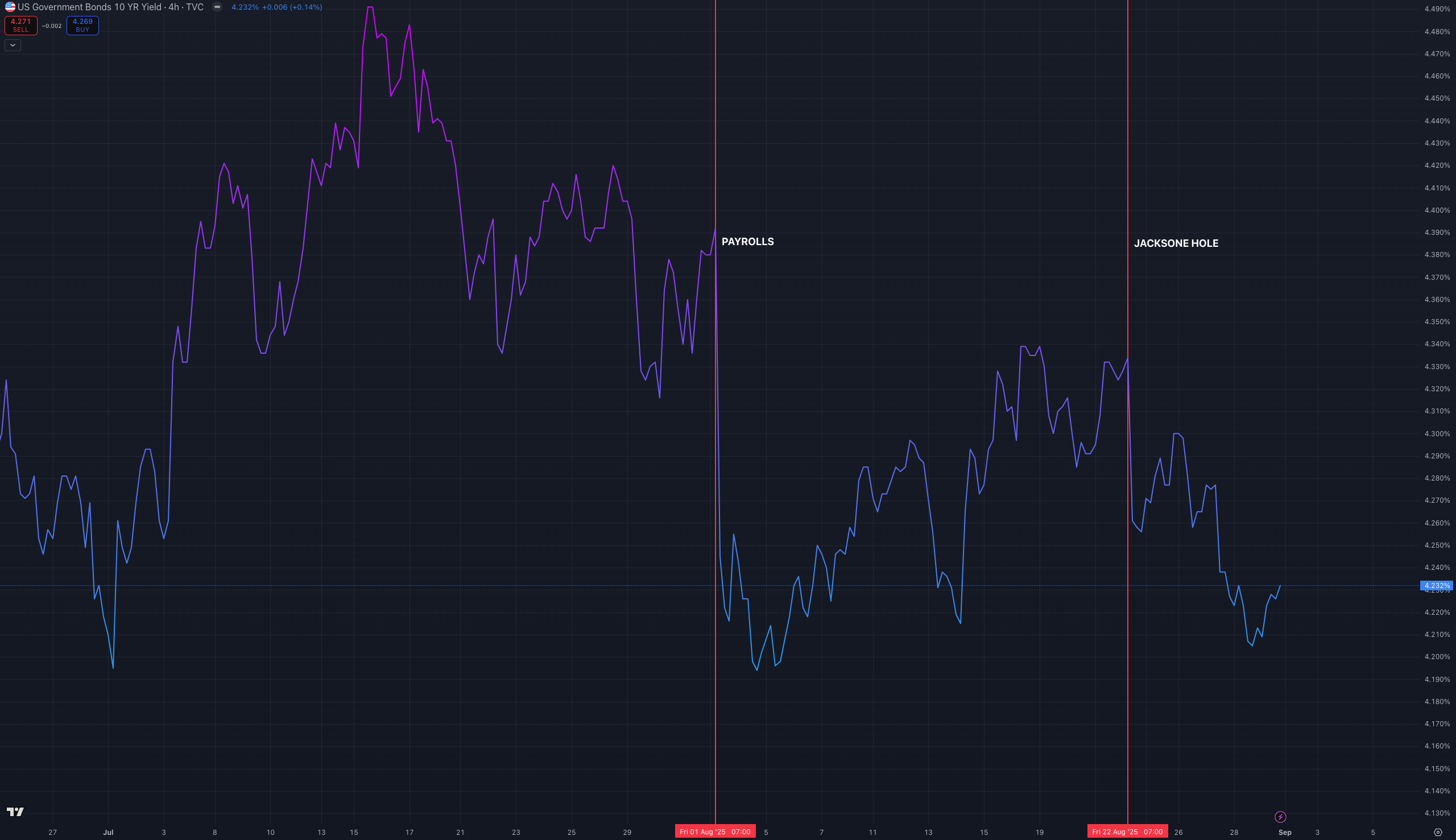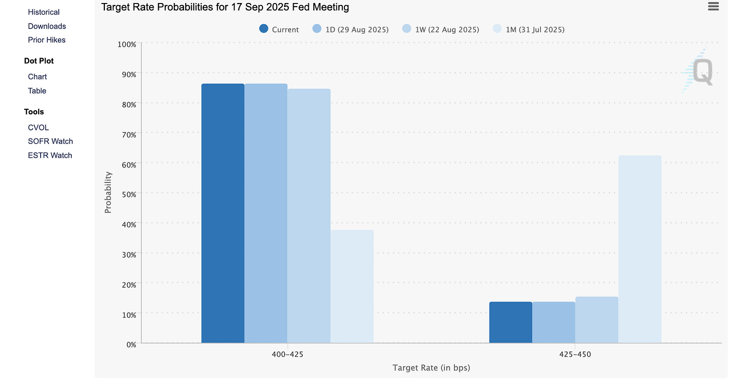 The Fed’s entire "data-dependent" framework suddenly looked “sus”. How can policy be data-dependent when the data itself is subject to such massive revisions? This was the catalyst markets on edge needed to commit to a september cut. Pr() jumping from 45% to 78% (now 86%) recaliberated understnading of this economic ‘slack‘