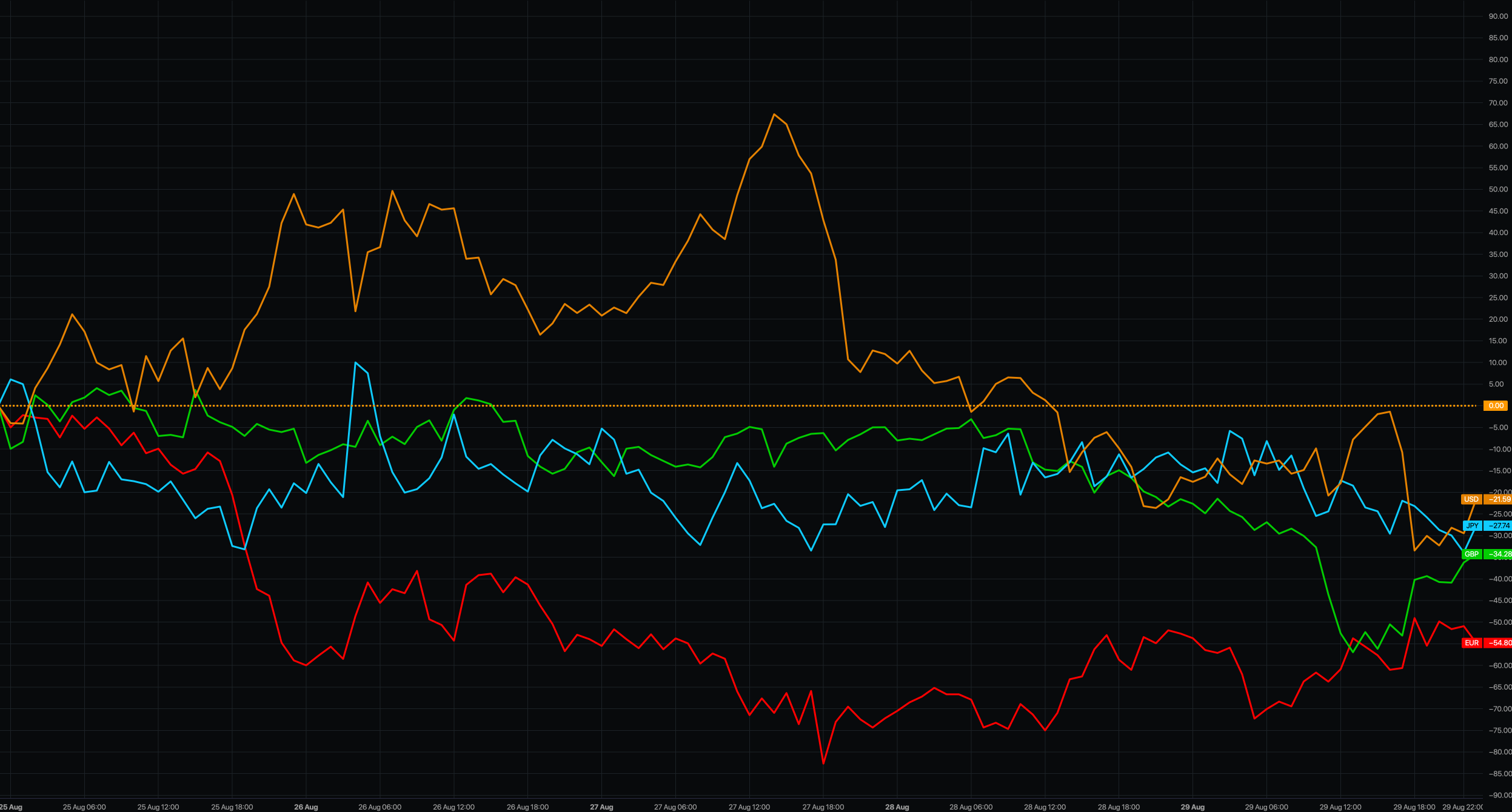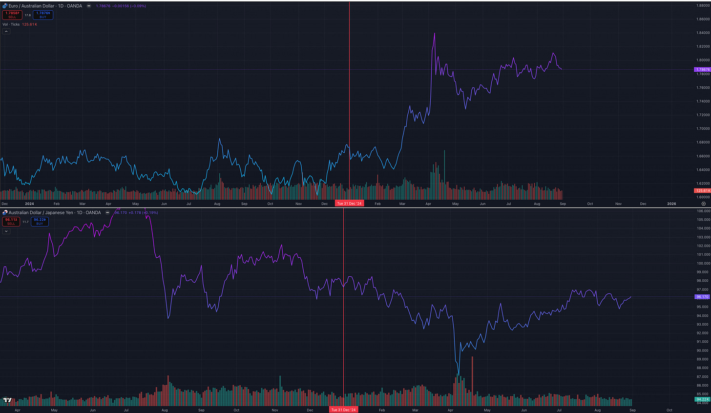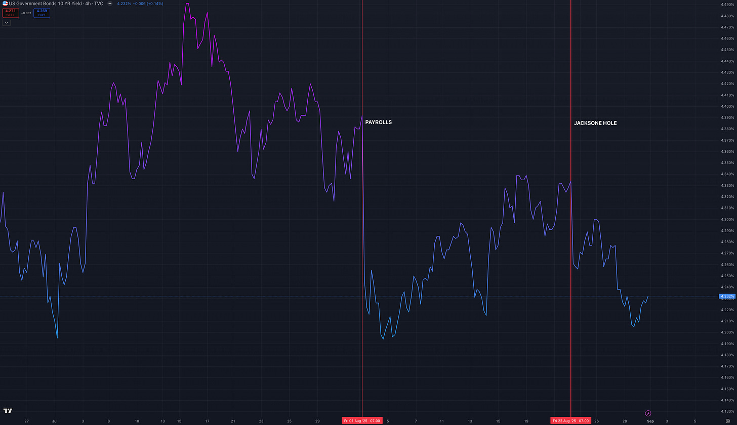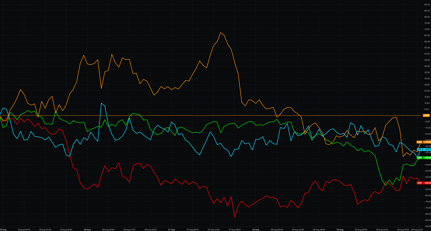 EUR: Under normal circumstances and past weeks light calendar, the EUR should have rallied meaningfully as markets rode the Fed September cut narrative. Instead, EUR/USD remained largely range-bound, weighed by escalating political risks in the Eurozone, France in particular. The BTP/OAT spread narrowed to ~5bps, levels last seen during the early stages of the 2010s sovereign debt crisis, underscoring renewed peripheral risk.