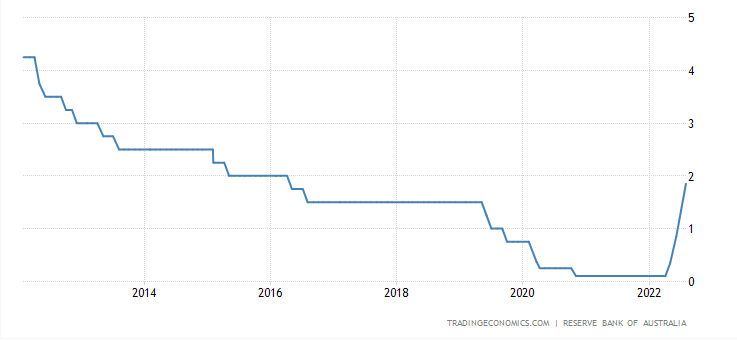 As it stands rates in Australia have risen back to back, meeting upon meeting to 1.85% as of Tuesday morning where rates were positioned at 1.35% before an additional 50bps was added onto the base rate.