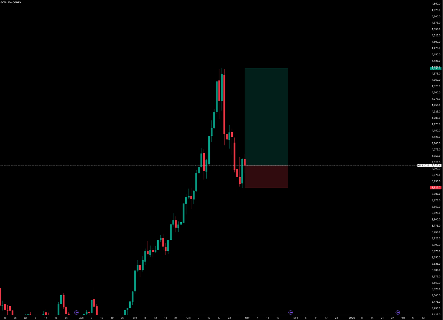 The gold call from mid-August was exceptional, arguably one of the trades of the year. What’s even more interesting is that I now see additional reasons for further upside in gold. The setup below represents an optimal entry, and I opened a manual position in Friday’s NY session. If prices start trading below the stop levels, however, I’d become more cautious about the prospect of gold reaching new ATHs by year-end, as that would suggest renewed selling pressure rather than a continued unwind in positioning, which has already largely played out. The conditions outlined across multiple reports (including this one) are precisely why I remain long on gold.