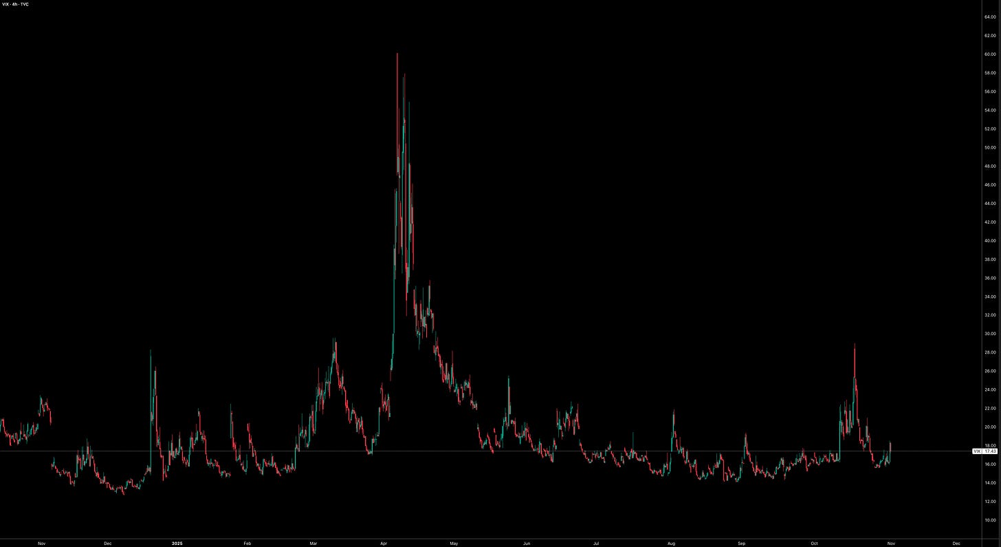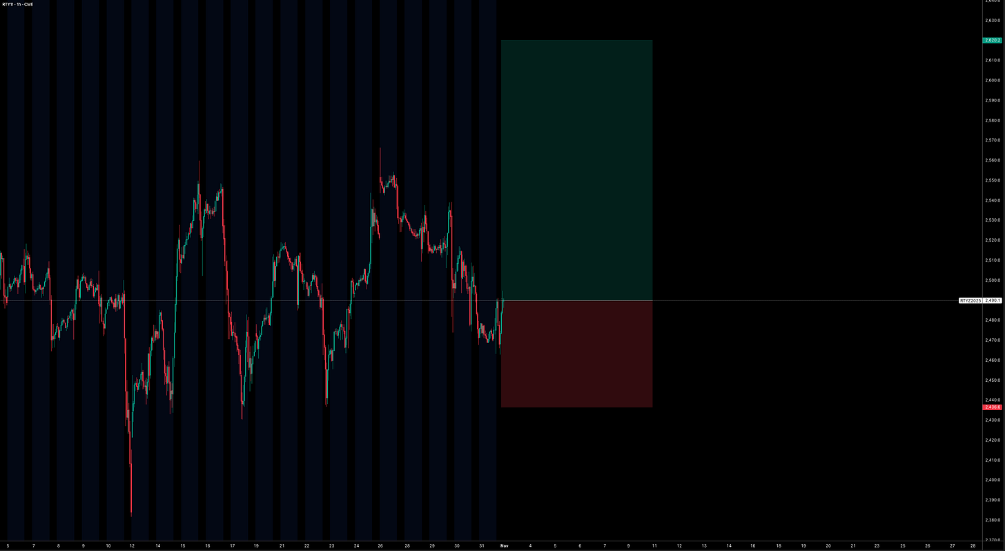 The most compelling trade heading into year-end remains the Russell. Growth is solid, the Fed has multiple rate cuts lined up, earnings are strong, liquidity is improving, and credit conditions are stable. Altogether, this backdrop is highly supportive for the current regime. I would reconsider this view only if small-caps start making new lows as labor data and inflation soften in November, an unlikely, but fair, falsifier for the thesis.