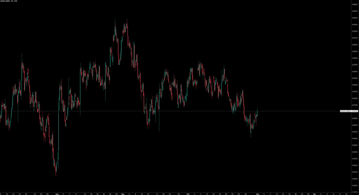 I’ve expressed my upside view in commodities through a few small positions , a bias I’ve maintained for several months and outlined in prior reports. As we move toward year-end, market dynamics remain delicately balanced… bonds are adjusting to a hawkish cut, equities are front-running the liquidity impulse, and the dollar is caught between cyclical and policy crosscurrents. The next phase hinges on how inflation momentum unfolds over the coming months. If CPI moderates without undermining growth, we could enter a genuine Goldilocks phase, one where easing becomes self reinforcing. If not, the narrative may quickly shift toward “policy error,” with the recent 2s10s flattening having served as the early warning signal.