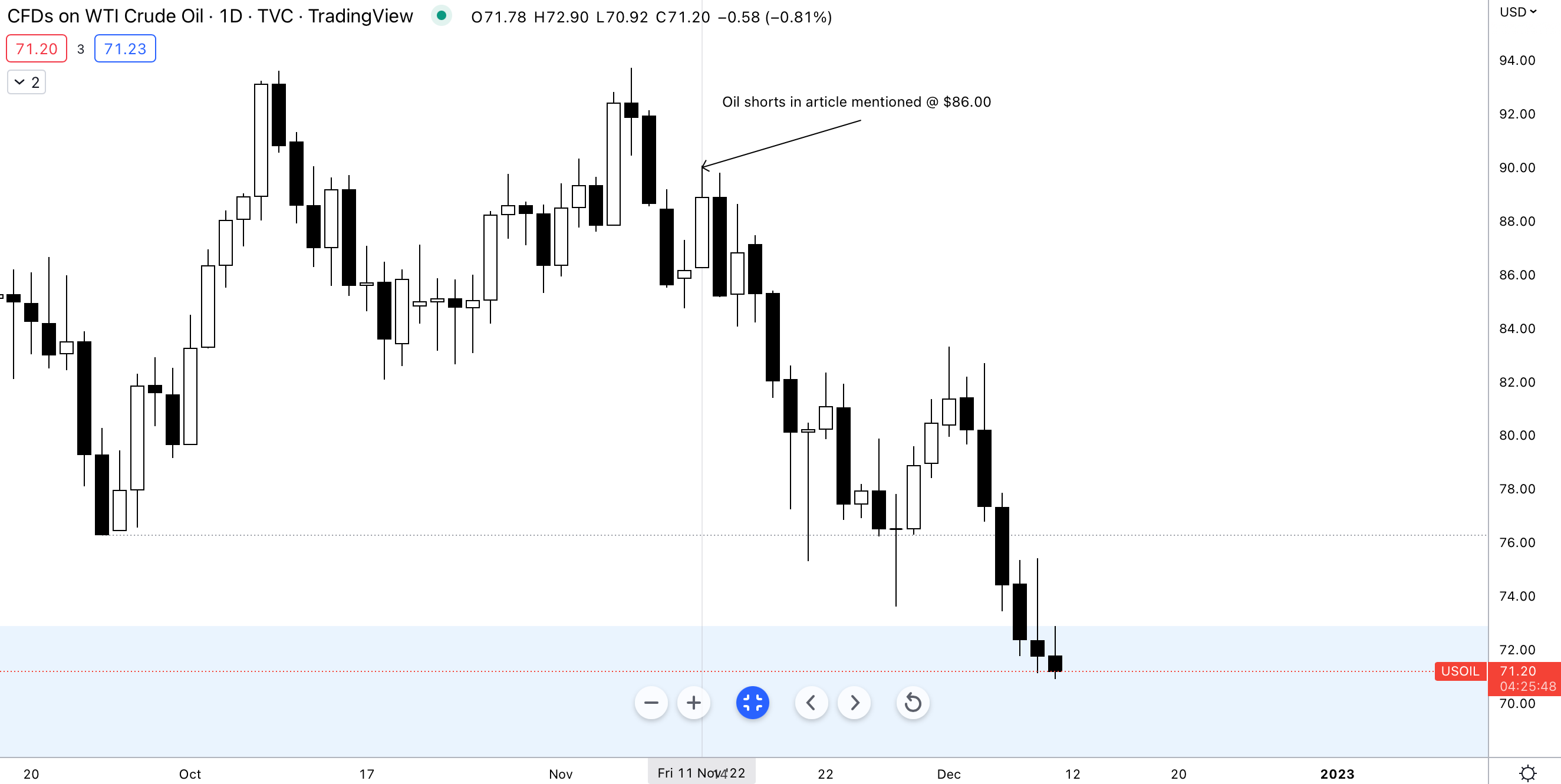 Commodity shorts, particularly oil shorts, something I mentioned in that same article here.