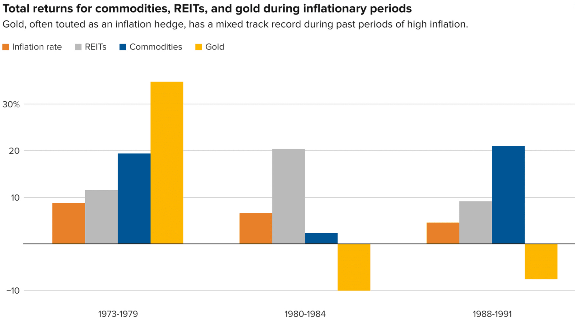 You cannot argue that gold doesn’t perform well in certain inflationary environments but neither can you argue that gold is the perfect asset allocation across inflationary periods; just looking back at the past few years 2022 gold returned 0.44% with inflation at 8.5% (-8.06% real return), in 2021 7.4% (inflation a real return of -0.1% and in 2020 31% return when inflation was only 1.2%.