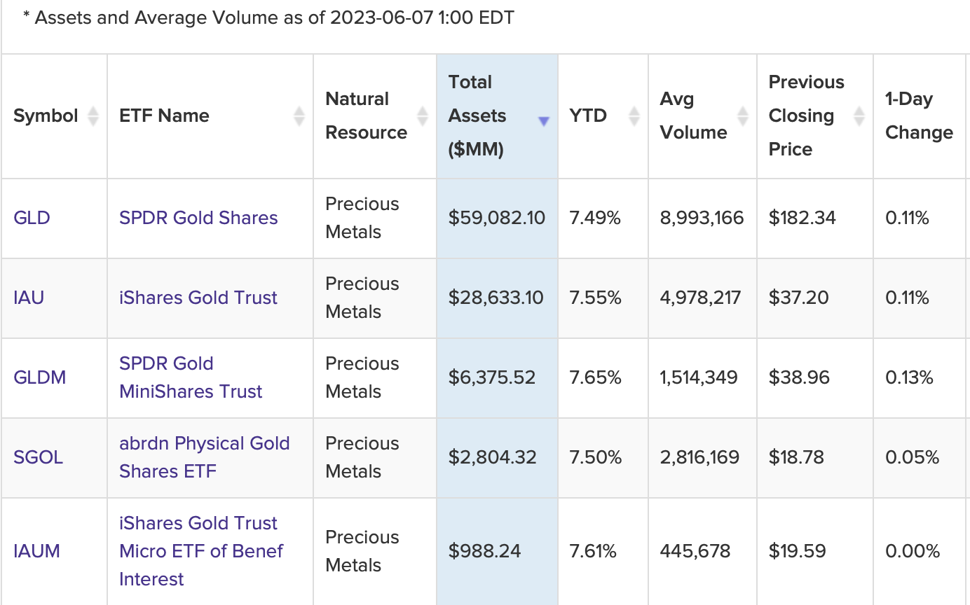 Gold ETFs (exchange-traded funds) e.g. seen below.