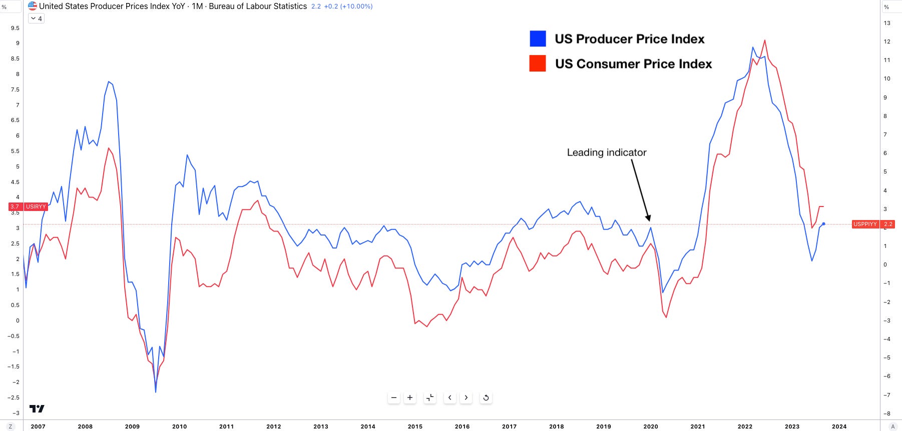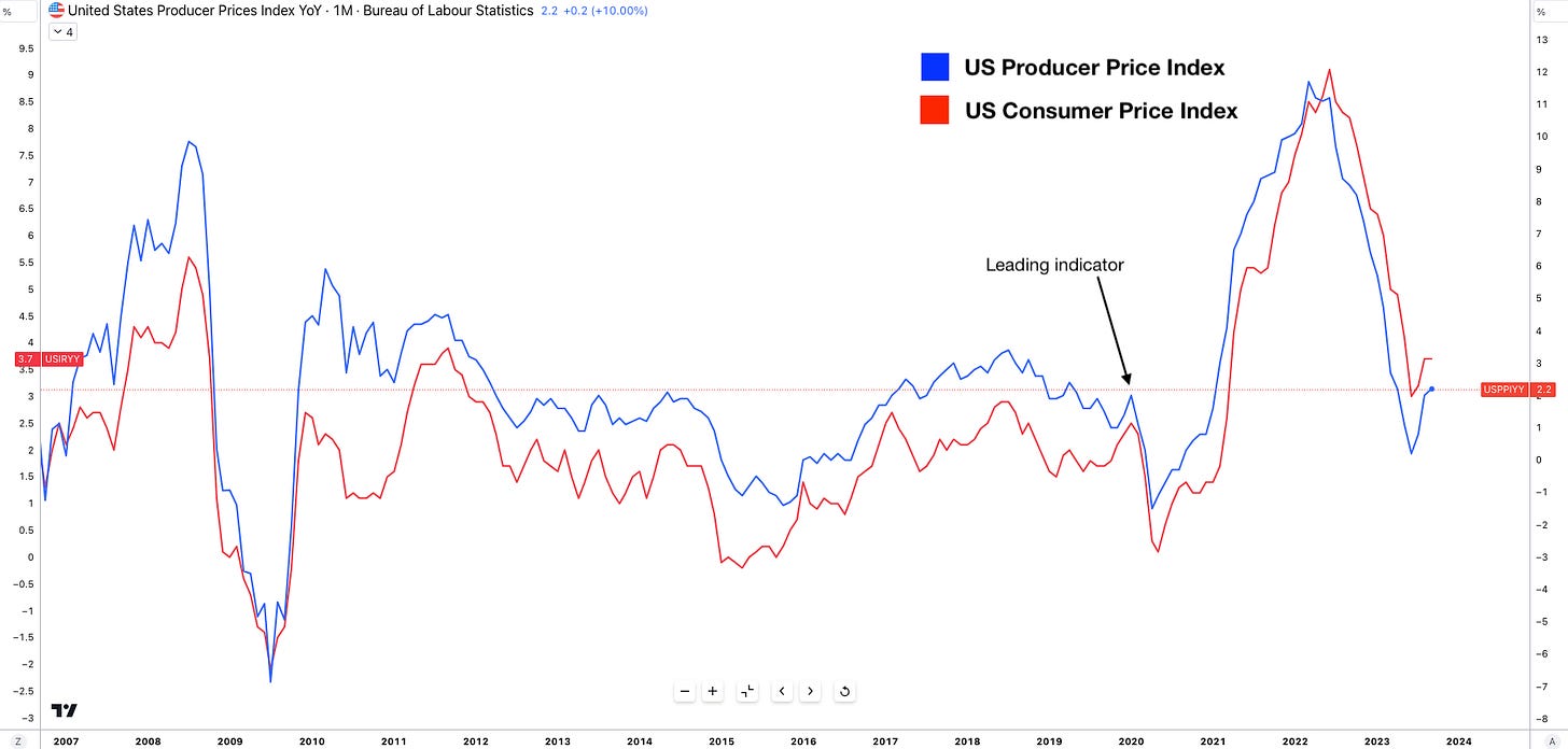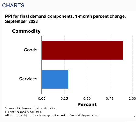 On Wednesday PPI MoM increased 0.5% vs 0.3% consensus. And on a year-over-year unadjusted basis producer prices rose 2.2% for the 12 months ending in September 2023.