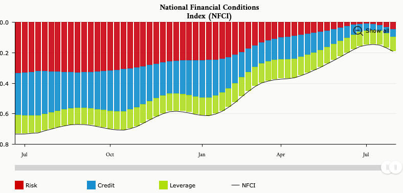 One chart that caught my eye after listening to a macro podcast was the NFCI, which is the National Financial Conditions Index created by the Federal Reserve Bank of Chicago; a release that comes out every week.