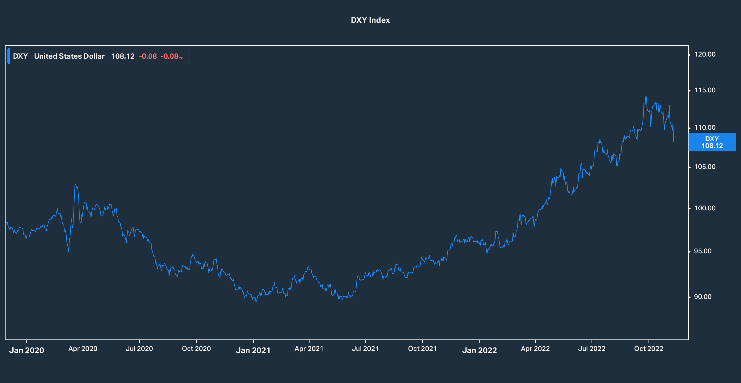 The current macro environment we’re in has sent the DXY to 110.00, up 12.67% for the year.