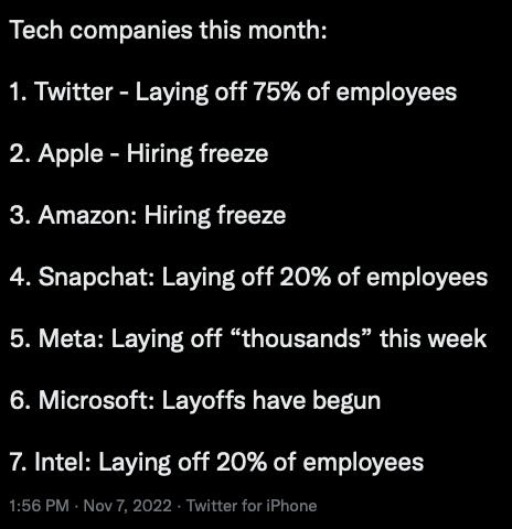It’s a bloodbath out there, with the most notable names Twitter and Meta being forced to cut thousands of employees from their workforce.