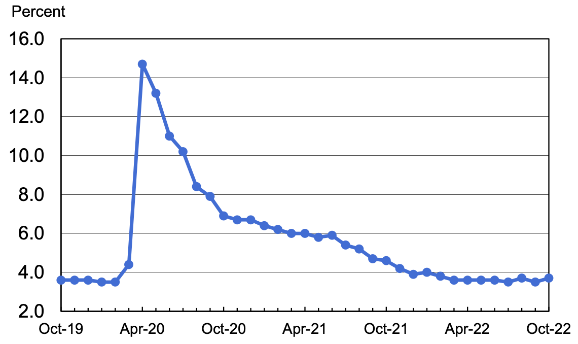 Total nonfarm payroll employment increased by 261k in October whilst the unemployment rate rose to 3.7%.