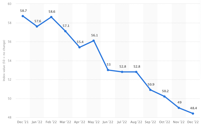 This could be conceived as a temporary period where risk appetite has returned to markets. Similar to a phase in markets called Goldilocks, where economic conditions are neither too hot or too cold, steady growth and controlled inflation- a perfect environment to be long risk assets. The only difference here is we are not in goldilocks-like conditions, we’re in a deflationary regime within markets, growth outlook is meek, the most recent December PMI print for the U.S hit the lowest readings since May 2020 and inflation is now declining consistently.