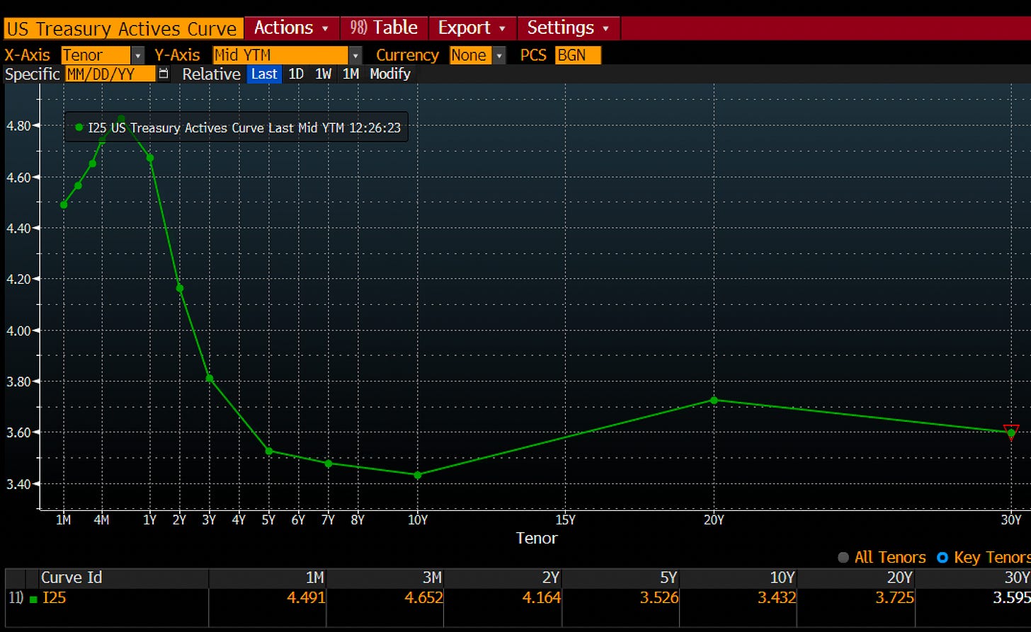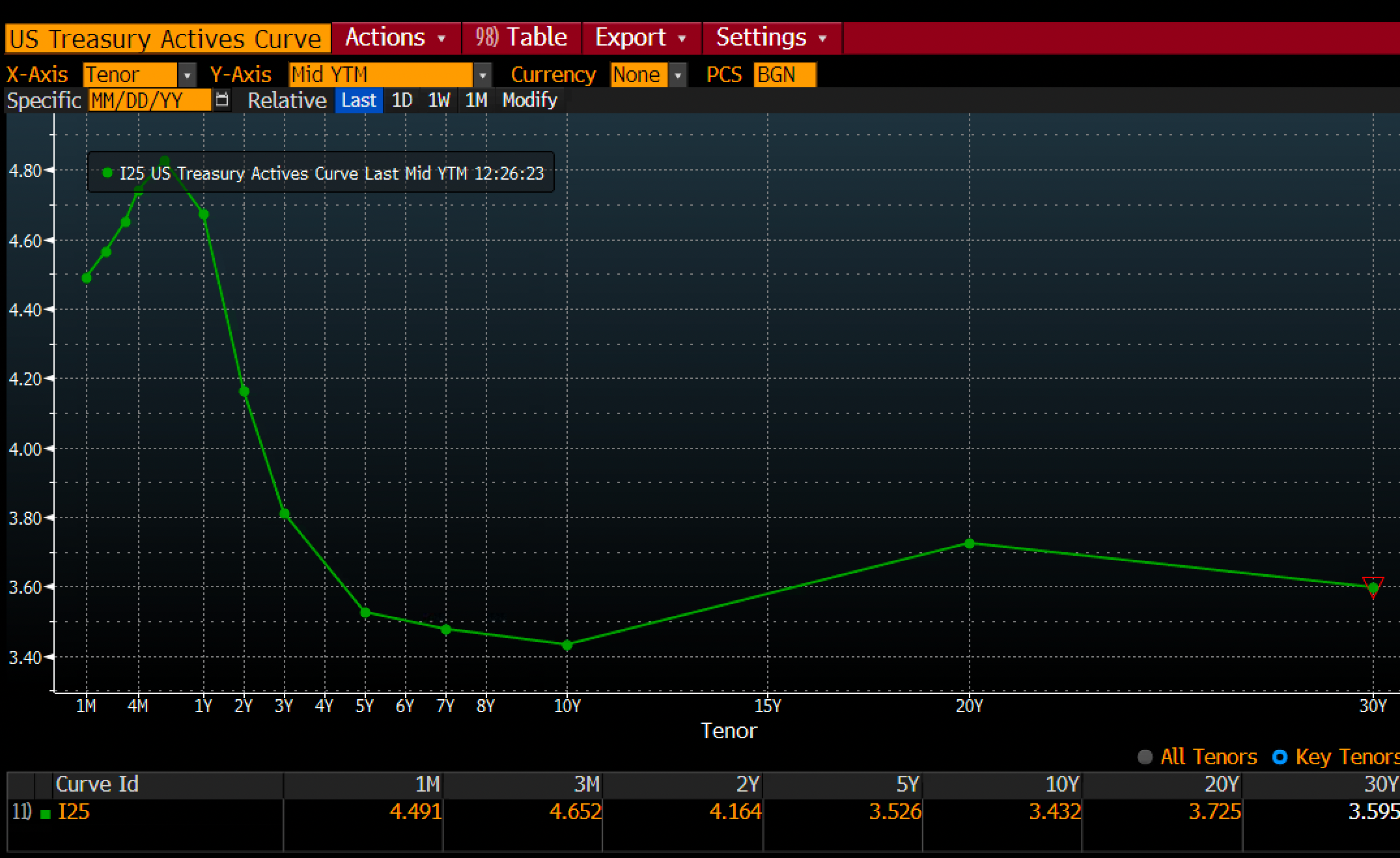 Good question. Here’s why, investors have priced in short term rates exceeding 4.5% in the upcoming months, shown by the UST yield curve below; but what they didn’t price in was the reopening of the second largest economy in the world and the secondary affects of this, neither the BoJ subduing global yields by not moving away from its monetary policy stance.