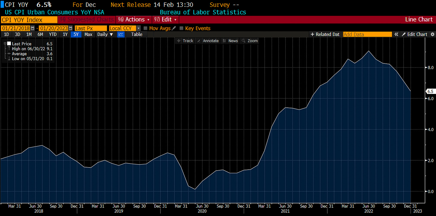 Last week, Thursday the 12th, U.S CPI print came in line with expectations at 6.5%, now this is positive news for both the economy and the Federal Reserve. Since June of 2022, the U.S has been in a deflationary period, successive declines in CPI prints, leading up to the 6.5% reading we saw last week. In December’s Fed minutes, we heard a very specific statement from Jay Powell, on where his focus would be looking forward: