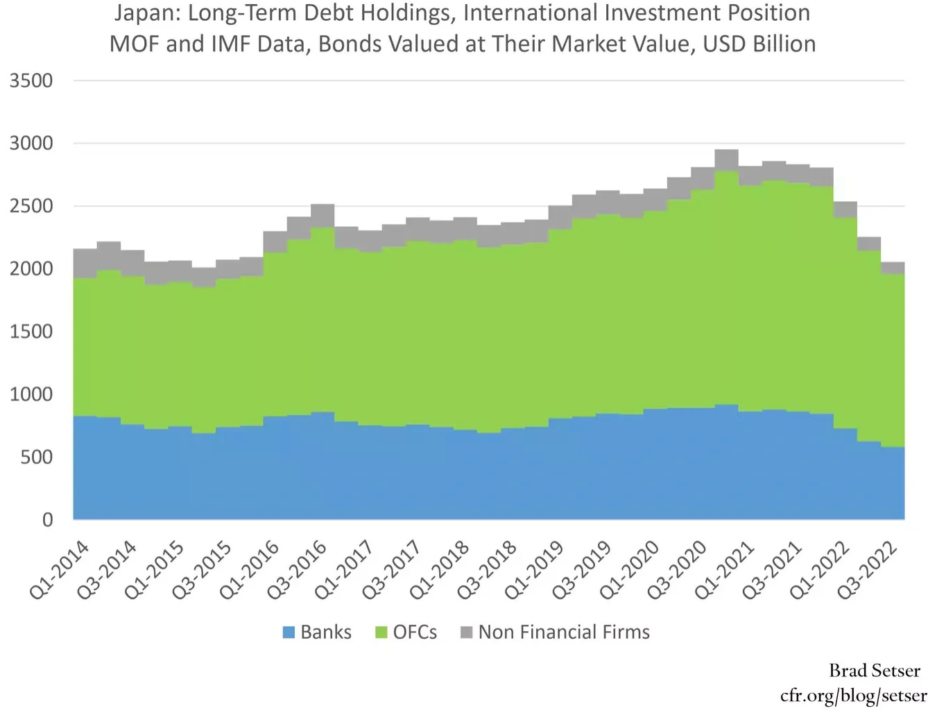 As many investors & funds believe, the removal of YCC seems most probable, and has a large scale effect on global bond yields and borrowing costs. Due to the low yield of bonds in Japan, institutional investors invest their capital in foreign bonds listed in the U.S and Europe mainly. Total holdings of foreign bonds by private Japanese institutional investors reached c$3 trillion at their peak in 2022. Japan is the single largest holder of U.S debt holding over $1.23 trillion U.S treasuries, accounting for more than 10% of total U.S debt.