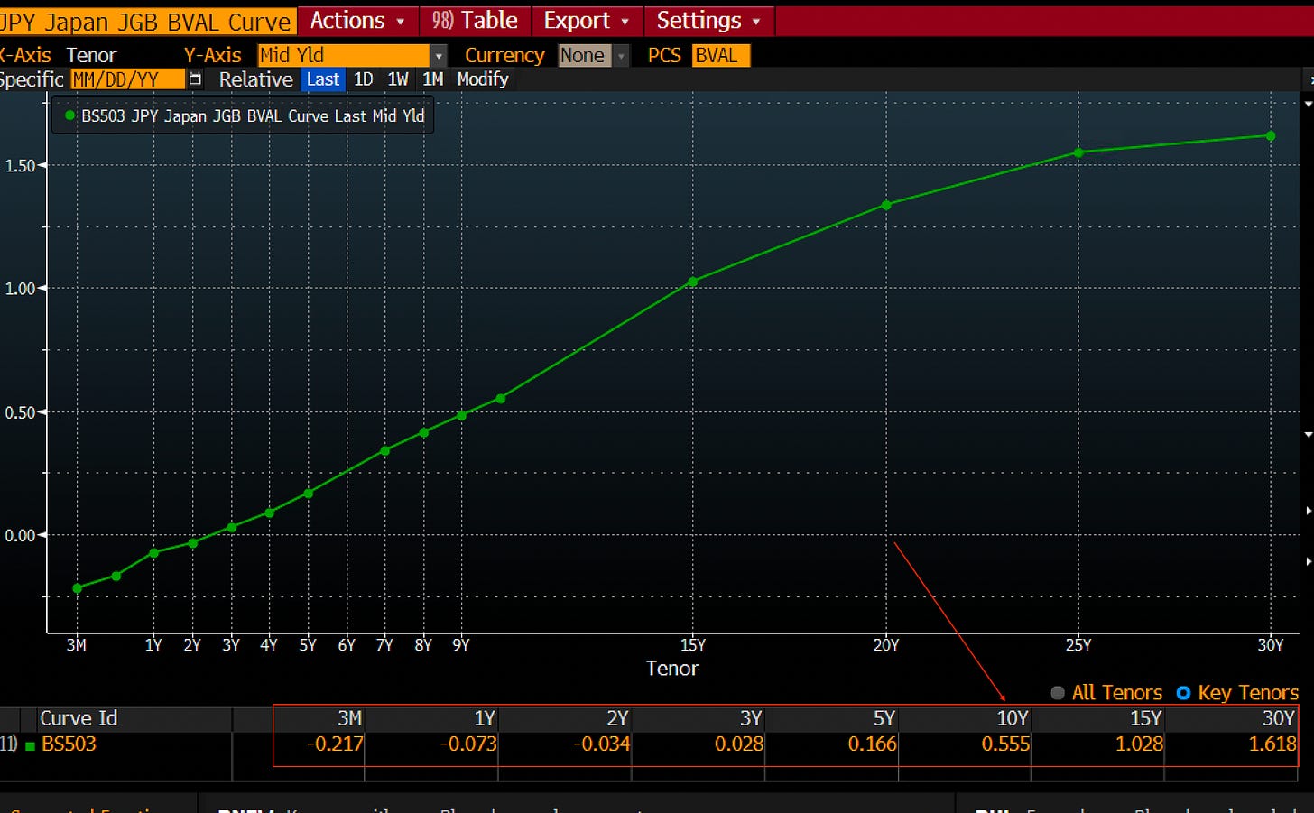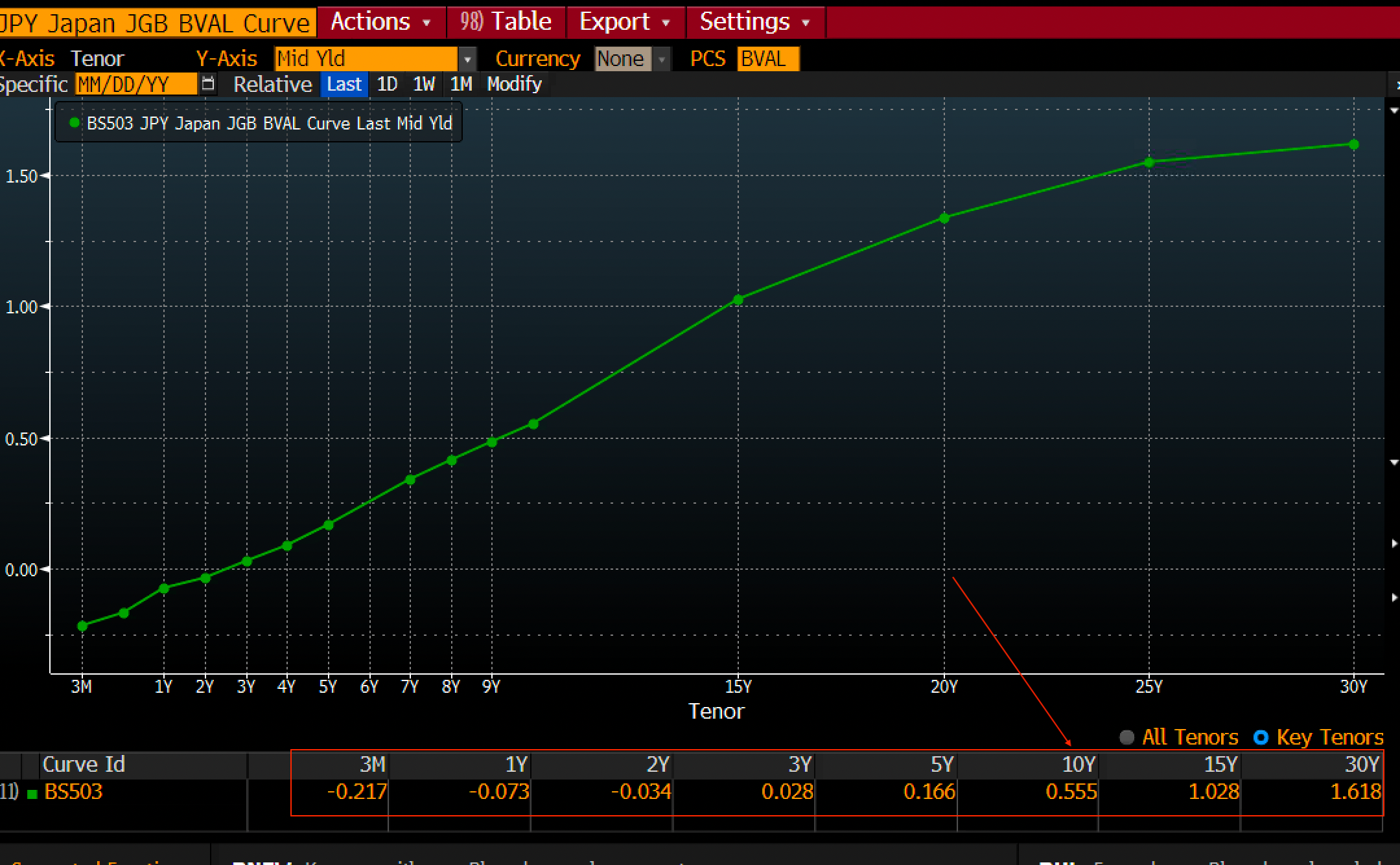 A steeper yield curve outside of Japan creating an opportunity for a spread trade** - (will research more and break this down)