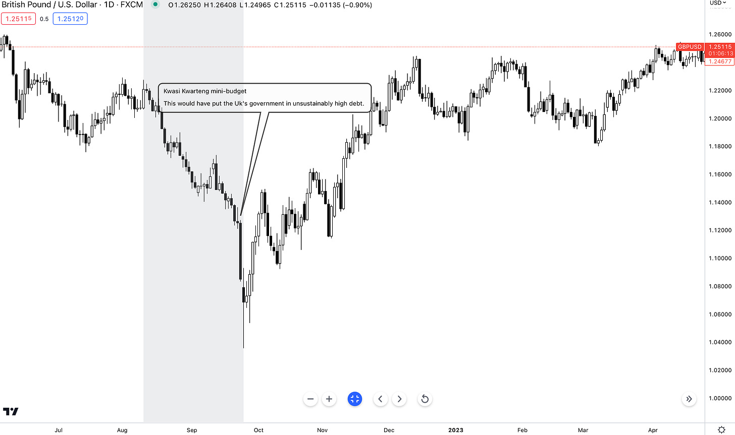 The only example I should need to reference is once again on the pound but look no further than last year when Kwasi Kwarteng the Uk’s Chancellor of Exchequer, released his ‘mini-bugdet’ plan which was set to swamp the Uk in billions of debt.