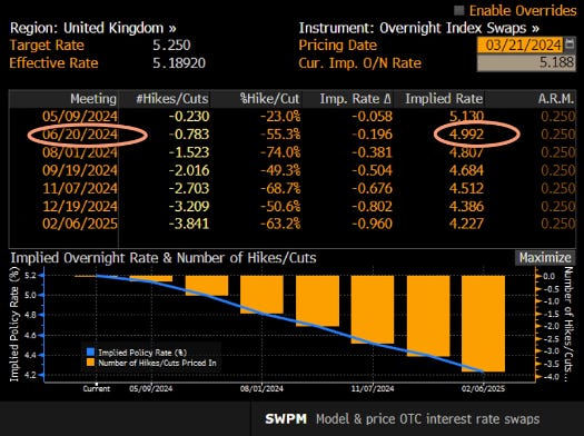 If we look back to February 1st 2024, we can see that both Jonathan Haskel and Catherine Mann voted for a rate hike, whilst all other members voted in favour of holding rates at 5.25%. This shift from two of the most hawkish BoE members signifies the agreement amongst the BoE that financial conditions have been sufficiently restrictive. It’s a data-dependent world for the BoE and Fed with both central banks looking forward to when the first cut will come; expectations have the cut for the BoE and Fed priced for June.