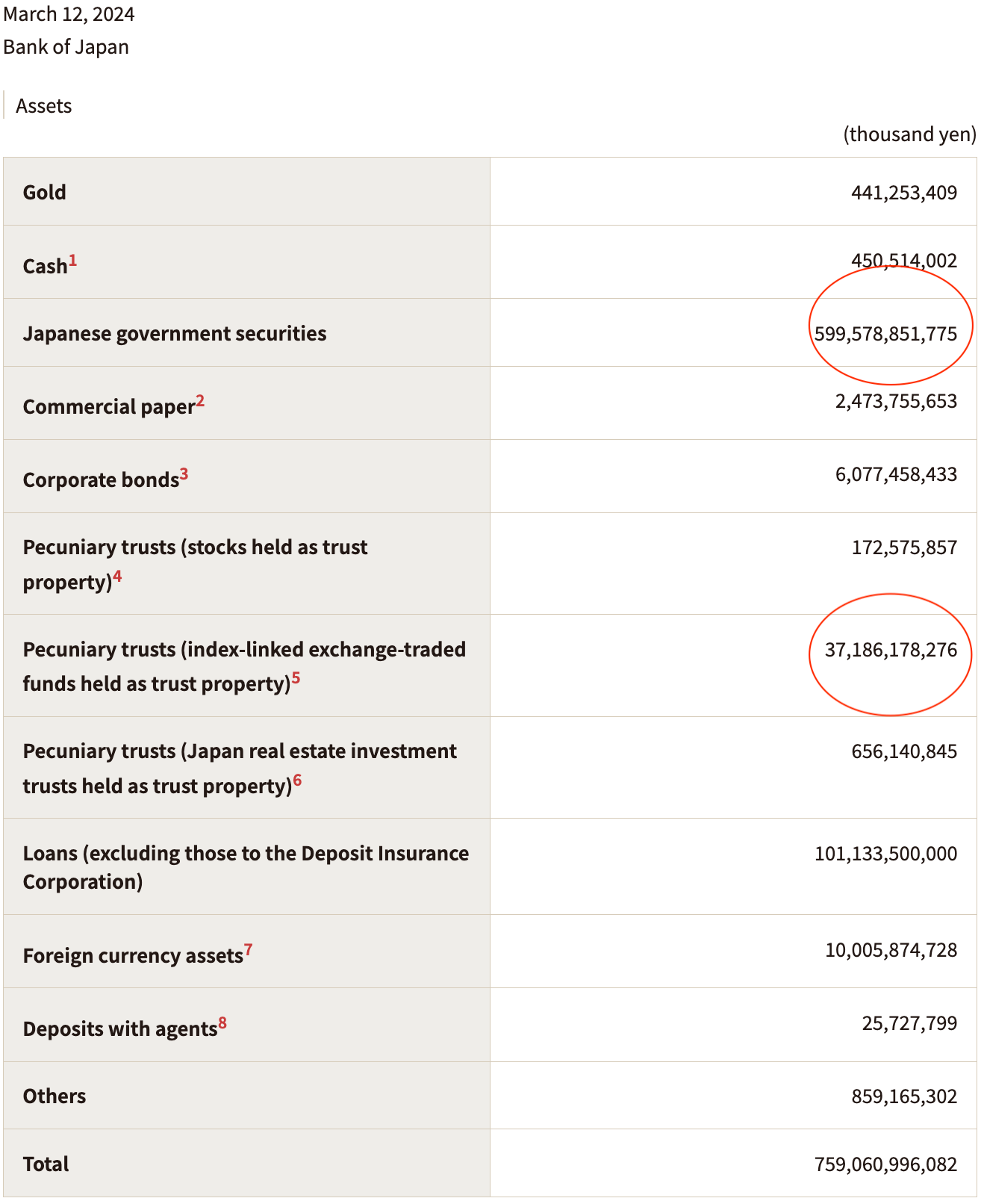 The BOJ's balance sheet, as of March 12, 2024 (Figure 4), reveals a unique feature: holdings of index-linked exchange-traded funds (ETFs). Unlike other major central banks, the BOJ's ETF holdings previously tracked the Nikkei 225 but have since shifted to follow the broader Topix index, which reflects the entire Japanese stock market.