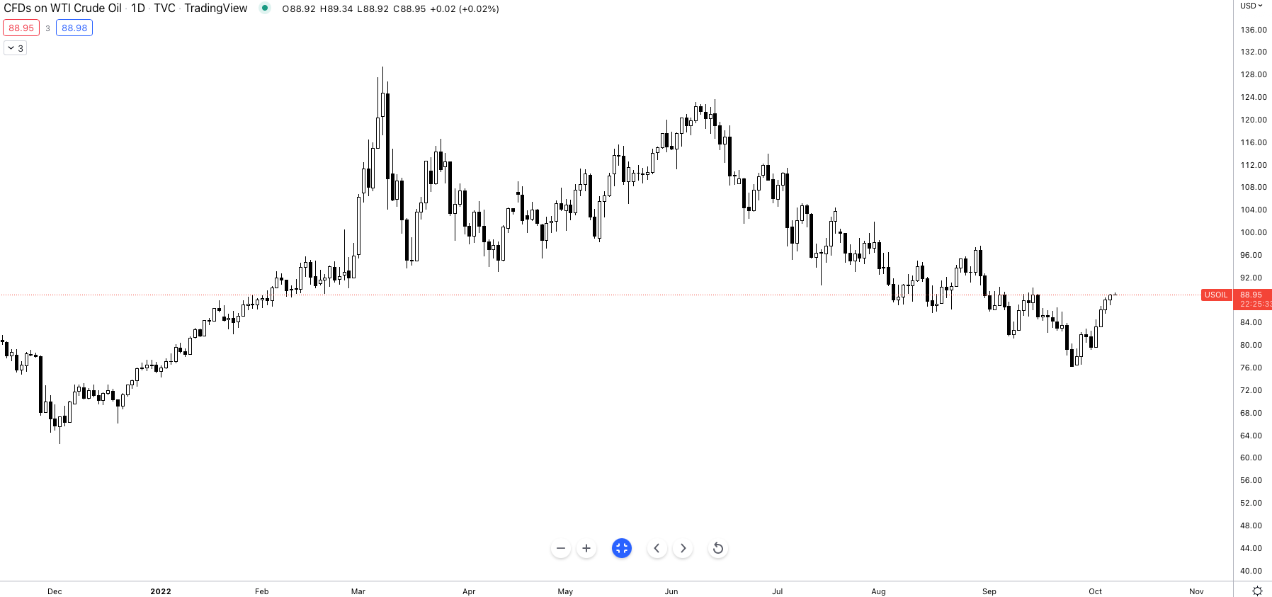 A mix of global macroeconomic events have pinned oil prices below the $100 mark and now below the $90 per barrel handle. On going tensions between Russia-Ukraine are causing investors to question their global outlook as supply chains remain constricted, Putin opening the conversation to nuclear weaponry and the explosion of Nord Stream 1 and 2 pipelines.
