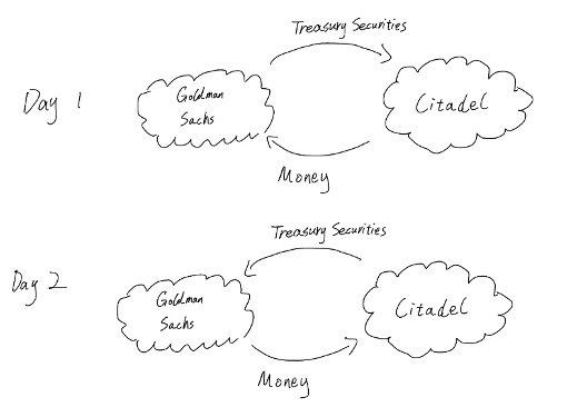 What’s quite different for financial collateral, thanks to the cunning financiers, is that financial collateral can be “re-used”. That is, if you received collateral from Citadel, you could re-lend the securities to somebody else. This ongoing “chain” of collaterals could last as long as the system can take it. To bring it down to layman’s terms, collateral reuse means using the same asset, like security, as collateral for multiple loans or transactions. Imagine you own a car. You could use it as collateral for one loan, or you could borrow against it multiple times (reusing) as long as the total borrowed amount doesn't exceed the car's value.