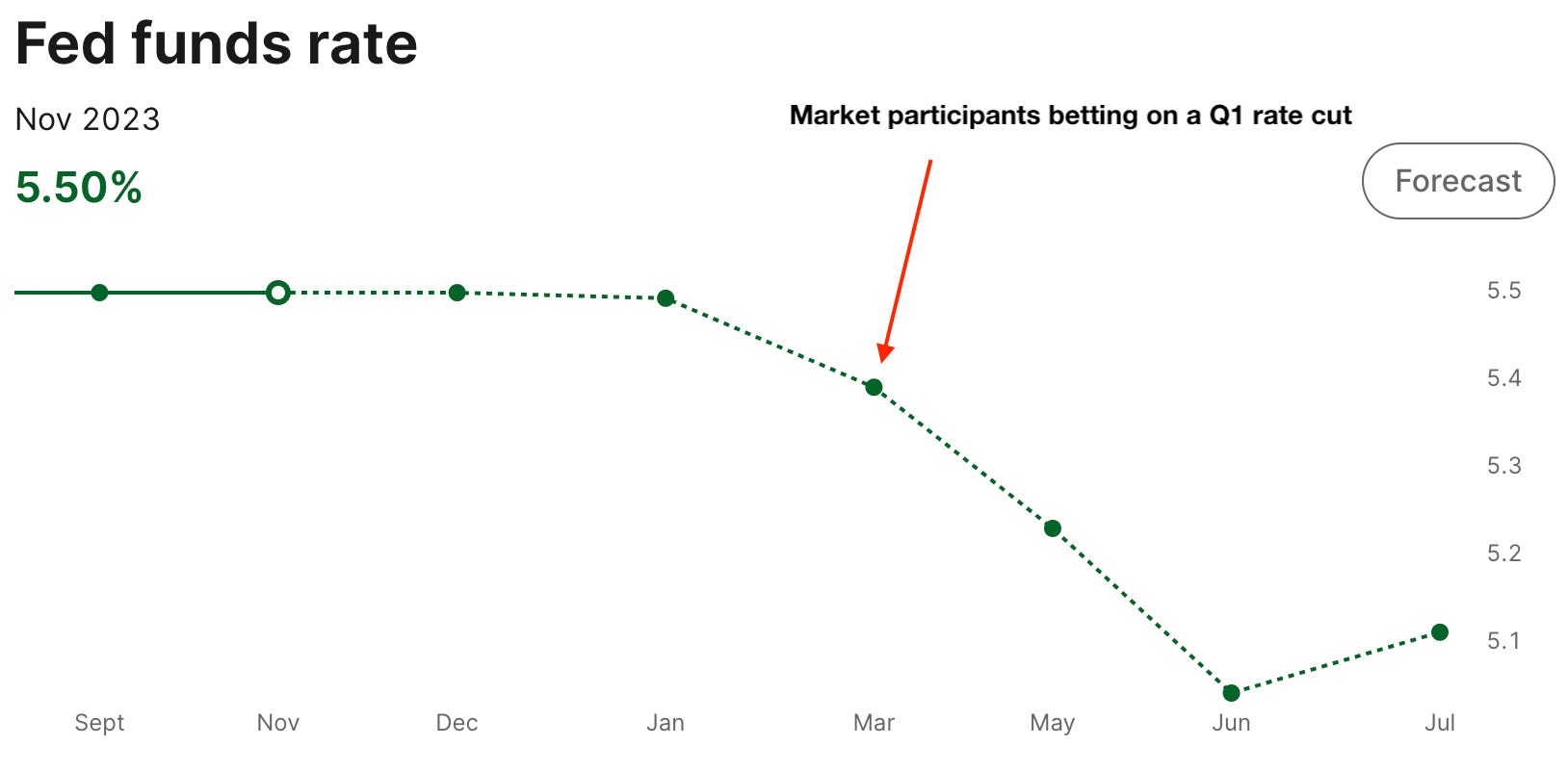 Bill Ackman, hedge fund manager of Pershing Square Capital, believes rate cuts will commence in Q1 of 2024, a standout viewpoint compared to the broad consensus that we will see a Fed cut in either Q3/Q4. If we were to see early rate cuts from the Fed, the Biden administration would benefit hugely during the Presidential election near year. Now that inflation in the US is largely in the rearview mirror, cutting interest rates not only helps the return profile of financial markets but also businesses with financing demand and the average US citizen looking to become a homeowner. Reasons that would fuel sentiment to back the current Biden administration.