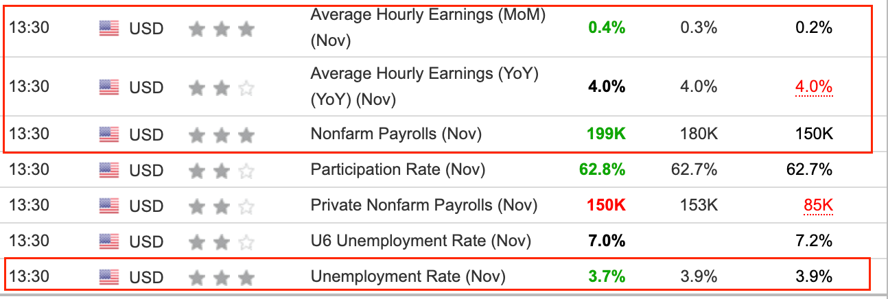 Non-farm data was released today and this print may force traders betting on a Q1 pivot to re-evaluate their views. Expectations were that the US added 184k jobs over November and average hourly earnings grew 4.0% YoY. The US labor market exceeded forecasts adding 199k jobs in November whilst the average overly earnings stagnated at 4.0%.