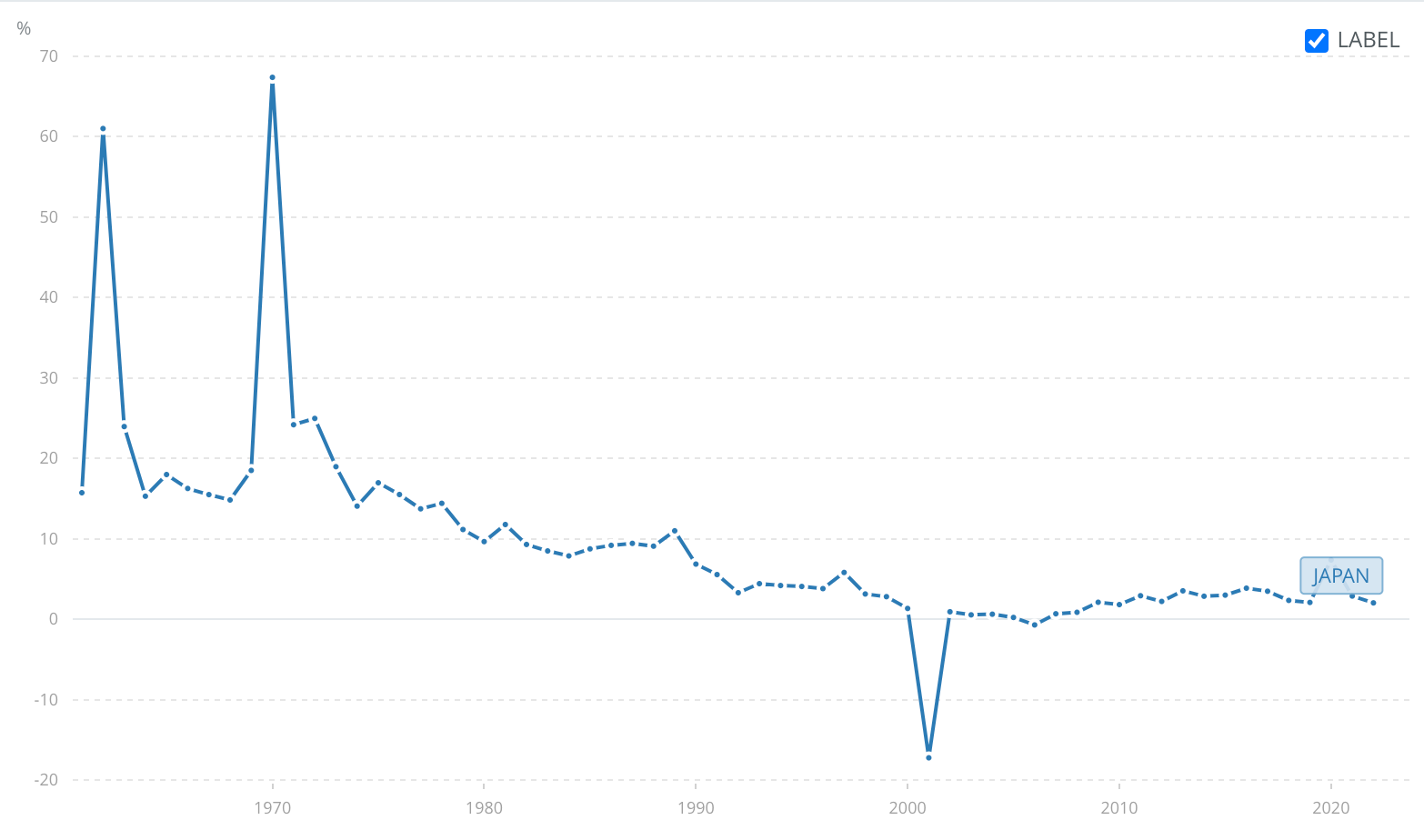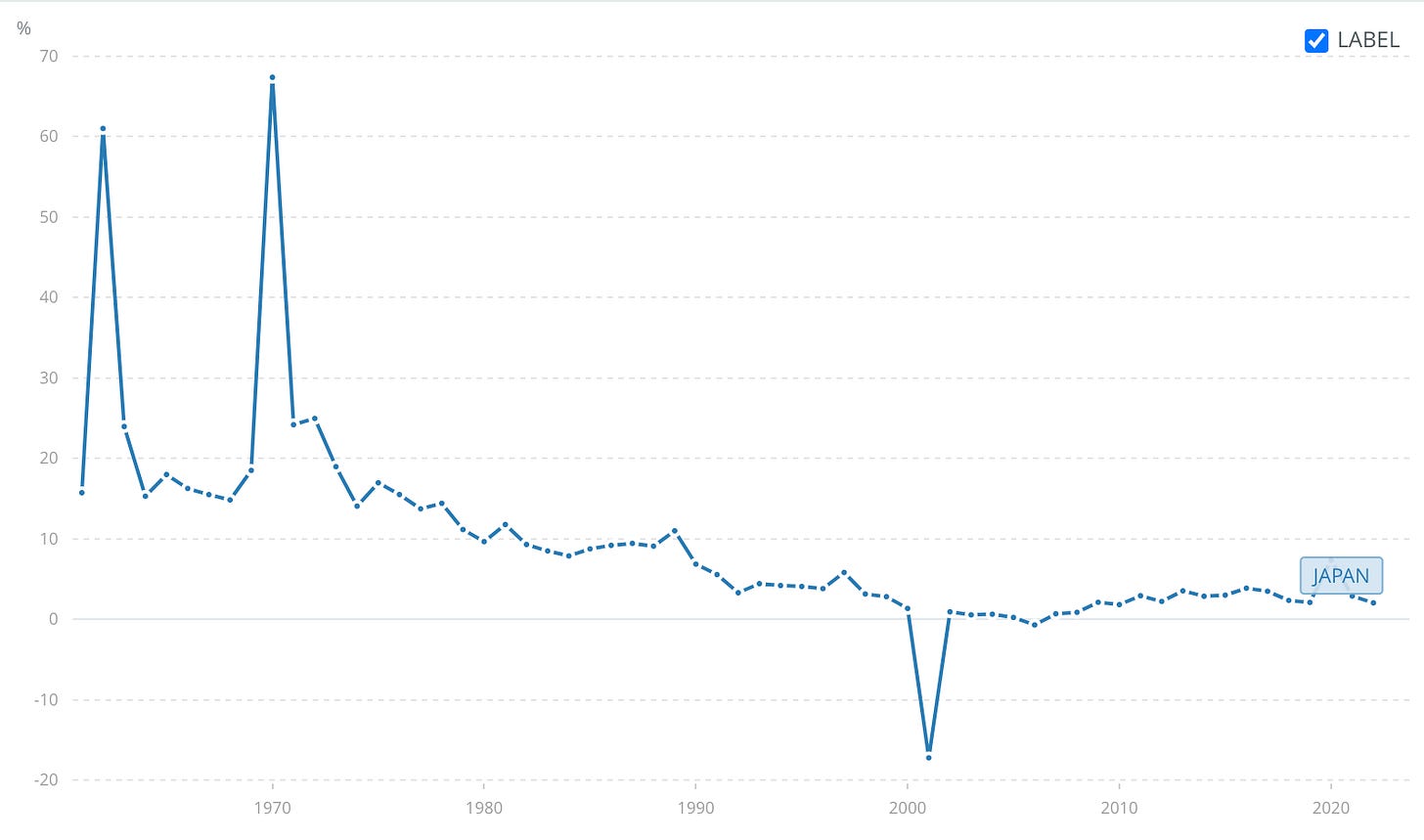 Take a look at Japan’s inflation rate from the 1990s to mid-2000s.