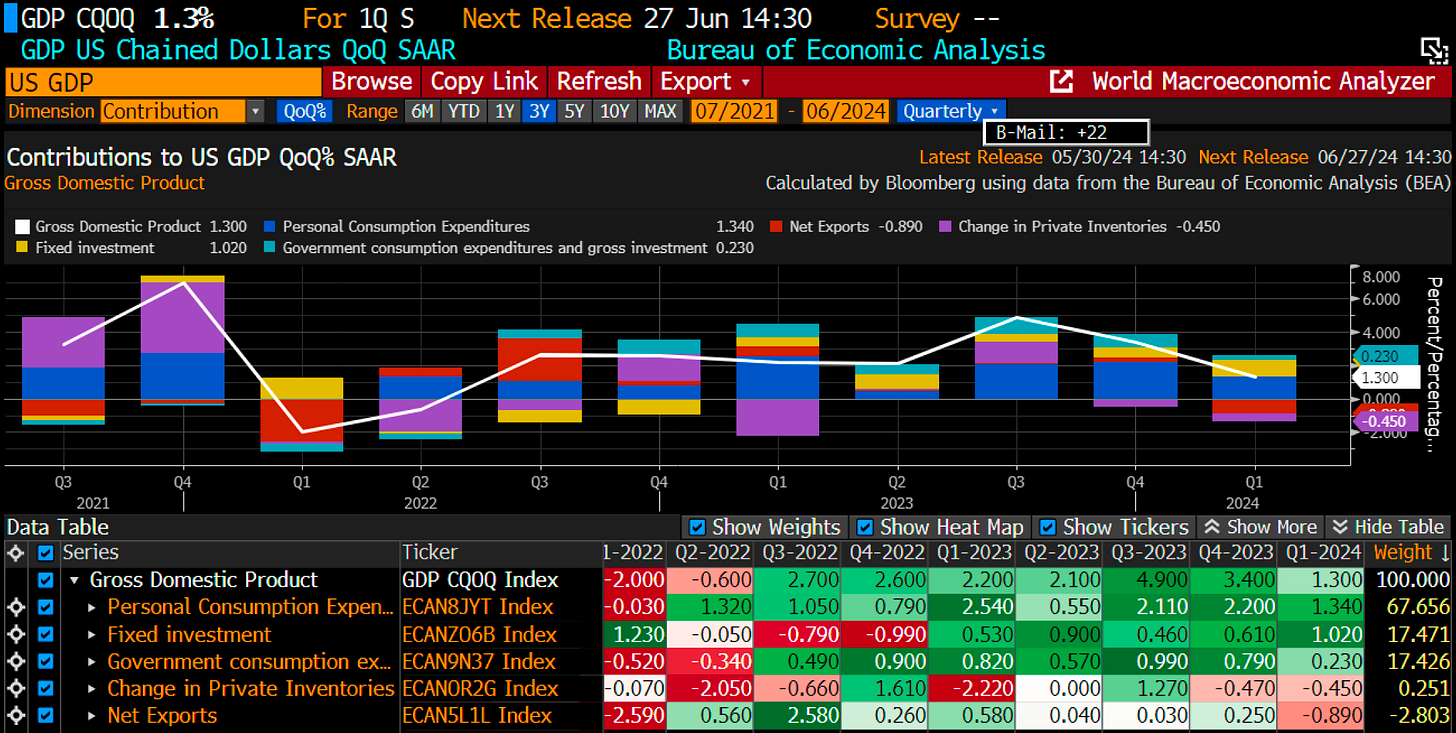 Growth Data once again slowed to 1.3% in Q1 from the 3.4% expectation beat of Q4.