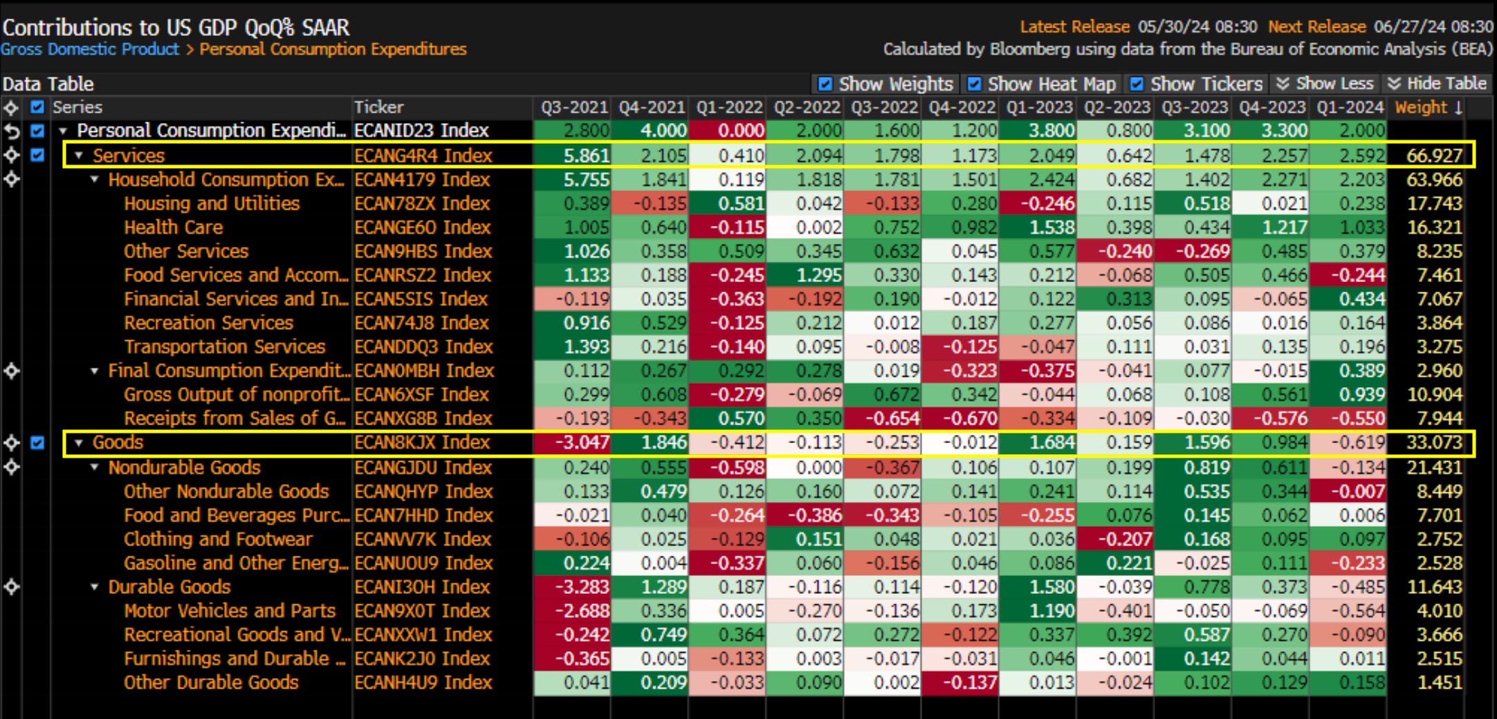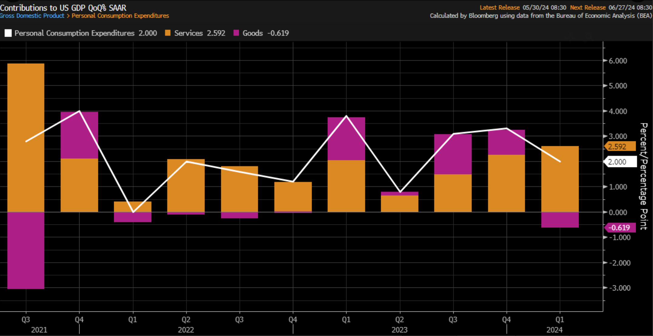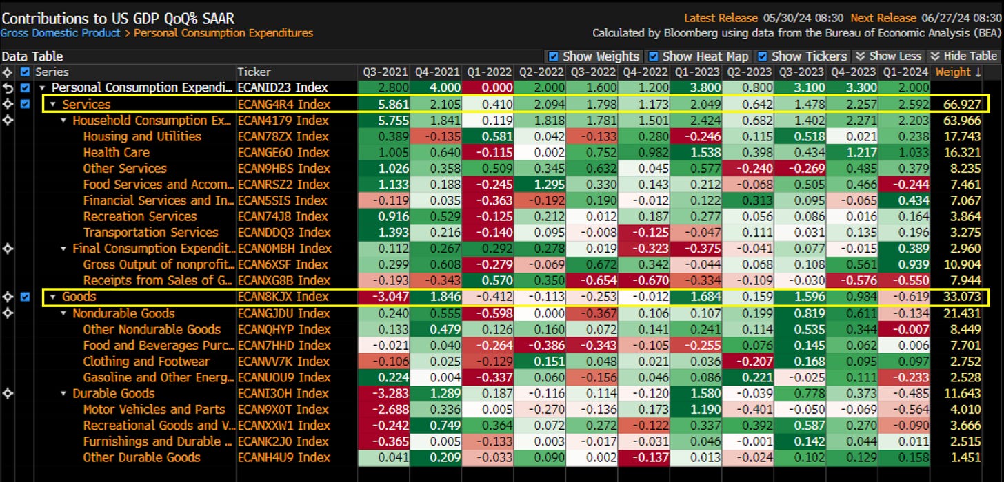 Figure 1 shows real consumer spending in the US economy for Q1, aka, PCE growth. In the second print of Q1, the PCE figure slowed to 2.0% from the advanced estimate of 2.5%.