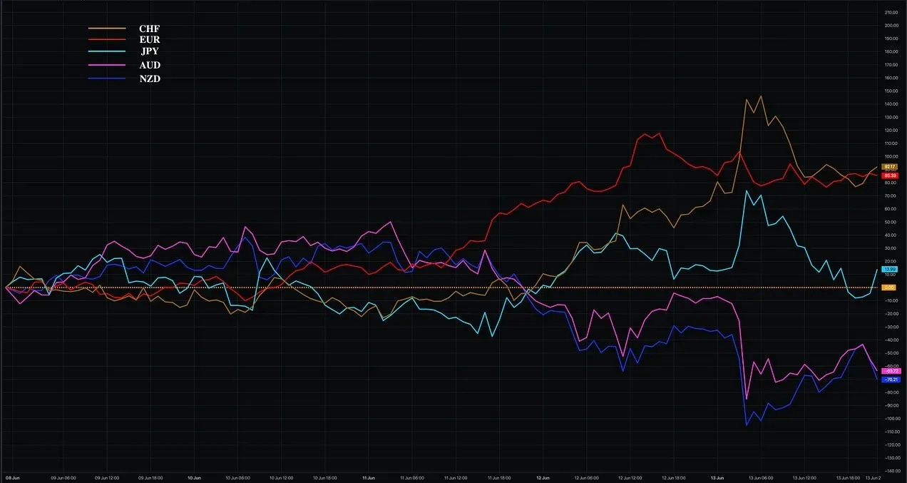 This is even more concerning when we factor in the developments in the Middle East. Historically, flight-to-safety flows into the U.S. dollar are a given in periods of escalation. Yet what’s puzzling is the market’s muted pricing of geopolitical risk. One explanation could be the now-familiar pattern of headline-driven spikes that tend to fizzle out quickly, causing traders to discount the longevity or severity of such events.
